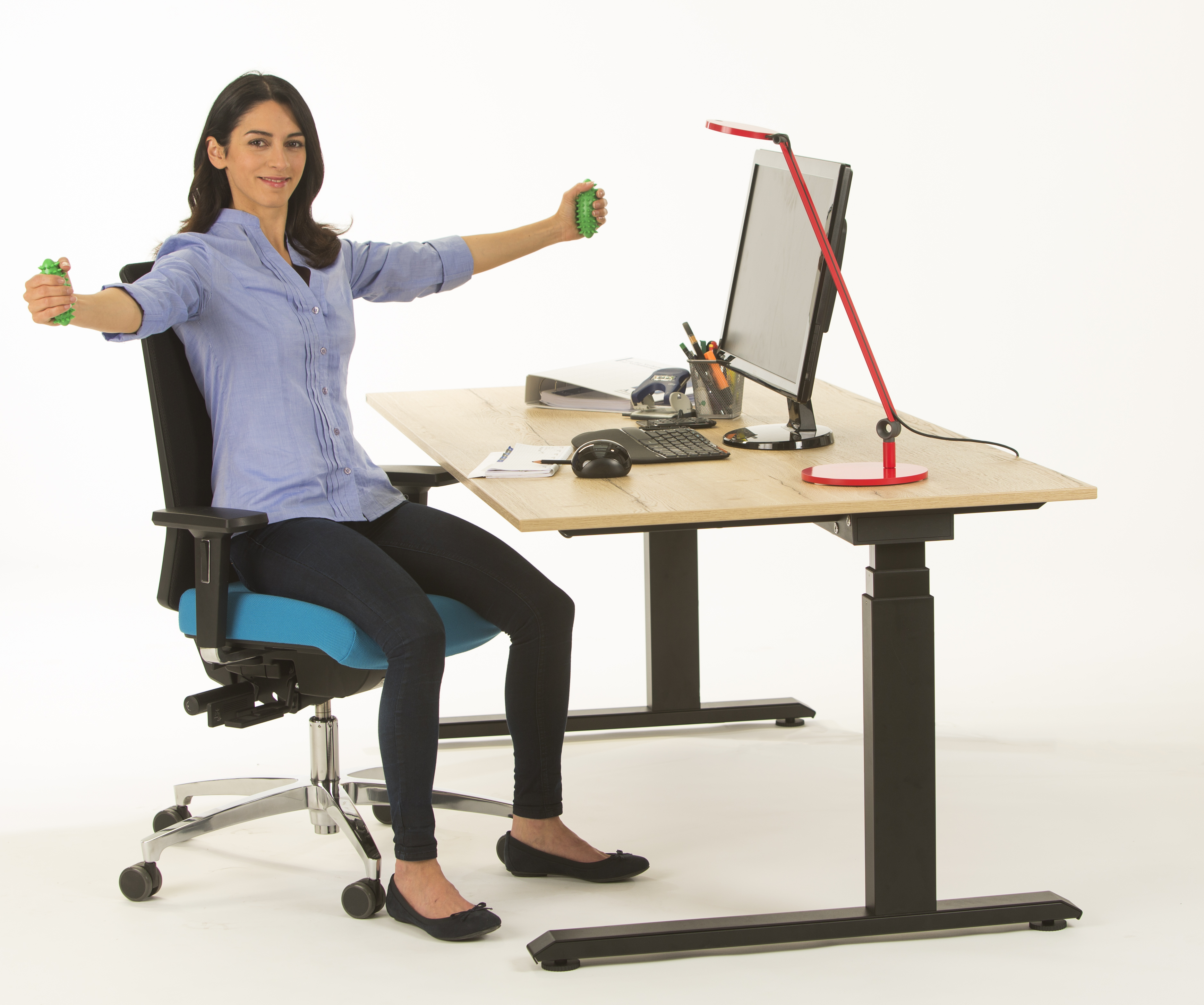 Sports devices can be small and unobtrusive but still highly effective. This makes them ideal for exercising in the office. The small Brasils by Togu (www.togu.de/en) for example fit in every desk drawer. If you shake them with a small amplitude, their special filling generates a movement feedback that strengthens your arm muscles and can stabilise your whole torso.