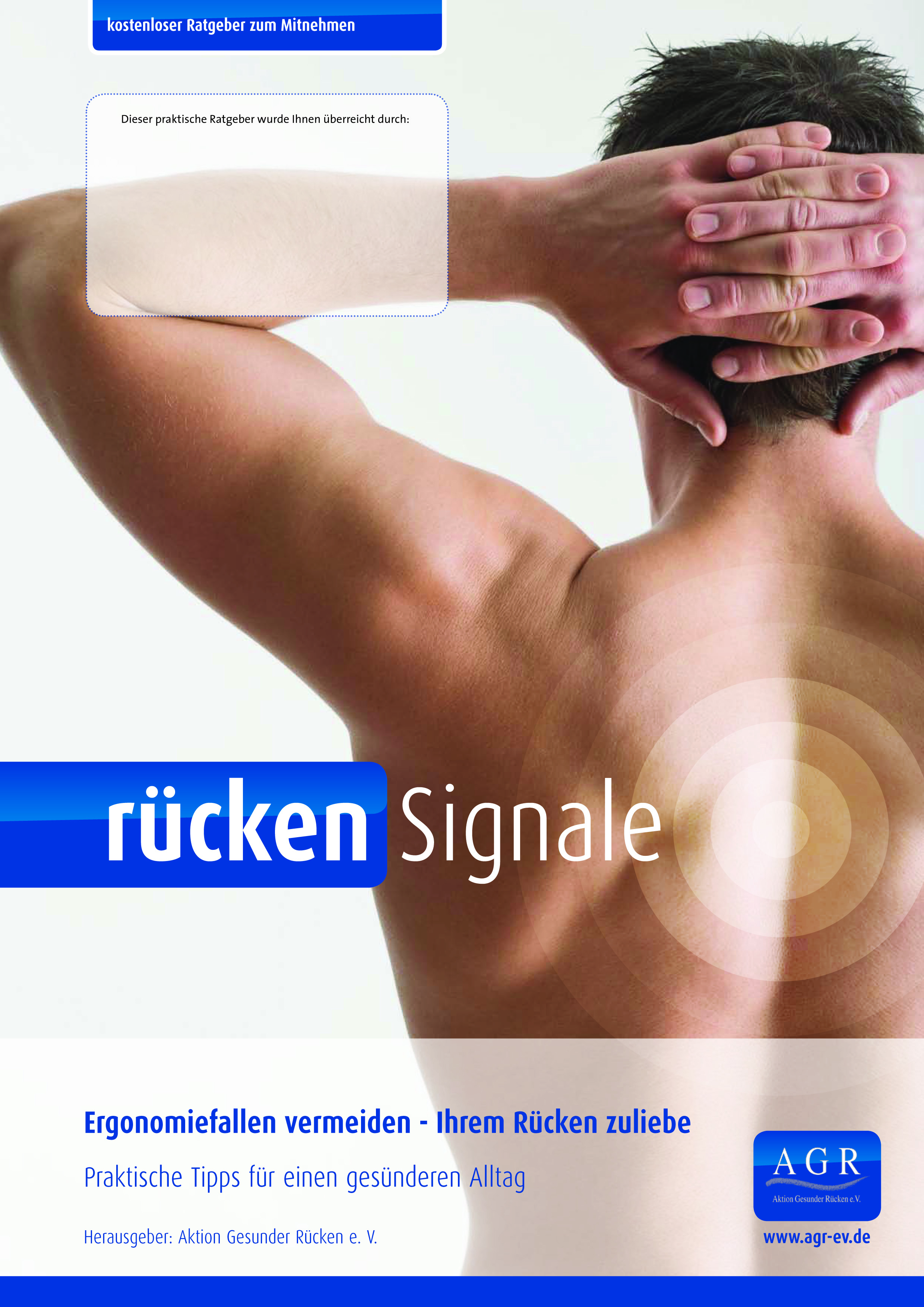 Die Zeitschrift rückenSignale steht im Internet unter www.agr-ev.de/... zum kostenfreien Download bereit und kann alternativ bei der Aktion Gesunder Rücken e.V. zum Portopreis von € 1,45 (Überweisungsträger liegt der Sendung bei) angefordert werden.
