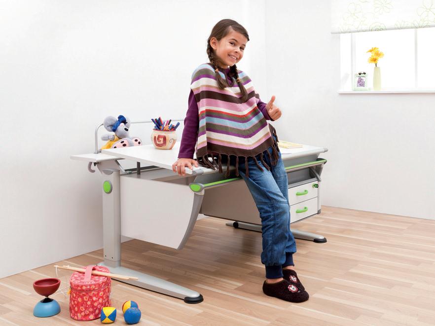 Wichtig für den Arbeitsplatz der Schüler ist eine schnelle, verschleißfreie Höhenverstellbarkeit der Tische und Stühle, damit sich beide dem natürlichen Wachstum anpassen. Eine leicht neigbare Sitzfläche, sowohl nach vorne als auch nach hinten, fördert dynamisches Sitzen und häufige Haltungswechsel, die wiederum den Rücken stärken. Die Tischplatte sollte ebenfalls mindestens um 16 Prozent neigbar sein.