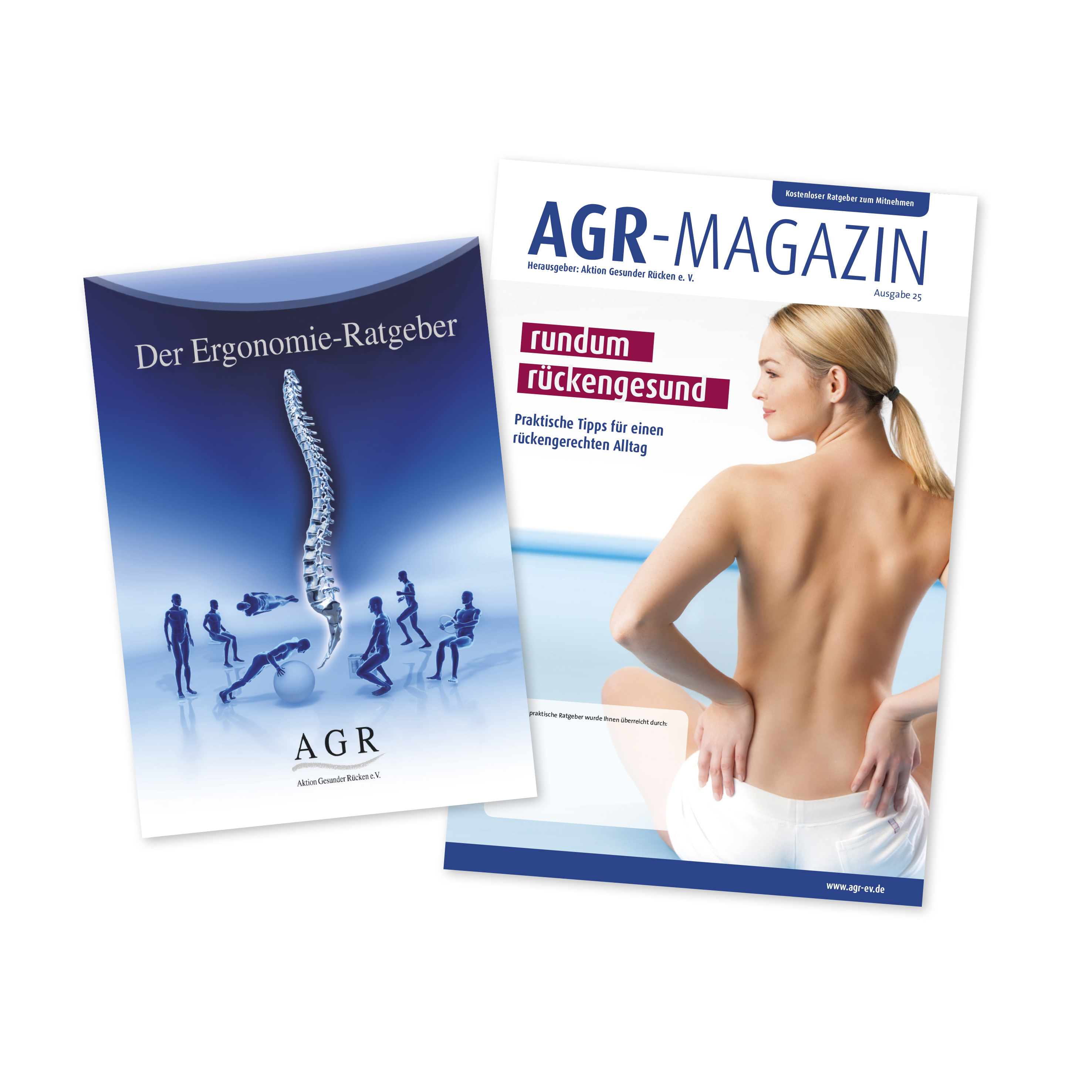 Die Aktion Gesunder Rücken e. V. präsentiert die aktualisierte Neuauflage des bewährten Ergonomie-Ratgebers sowie des AGR-MAGAZINs "rundum rückengesund". Ziel ist es, Endverbraucher für die Nutzung rückengerechter Produkte zu sensibilisieren und sie zusätzlich über die besondere Beratungsqualität AGR-zertifizierter Händler zu informieren. Beide Medien können von Interessierten unter 04284 9269990 oder info@agr-ev.de bestellt werden. Während der Ergonomie-Ratgeber dort für 12,95 Euro erhältlich ist, wurde für das AGR-MAGAZIN ein kostenloser Download unter www.agr-ev.de/patientenmedien eingerichtet. Es ist außerdem bei vielen tausend Ärzten, Therapeuten und Rückenschulen gratis erhältlich.