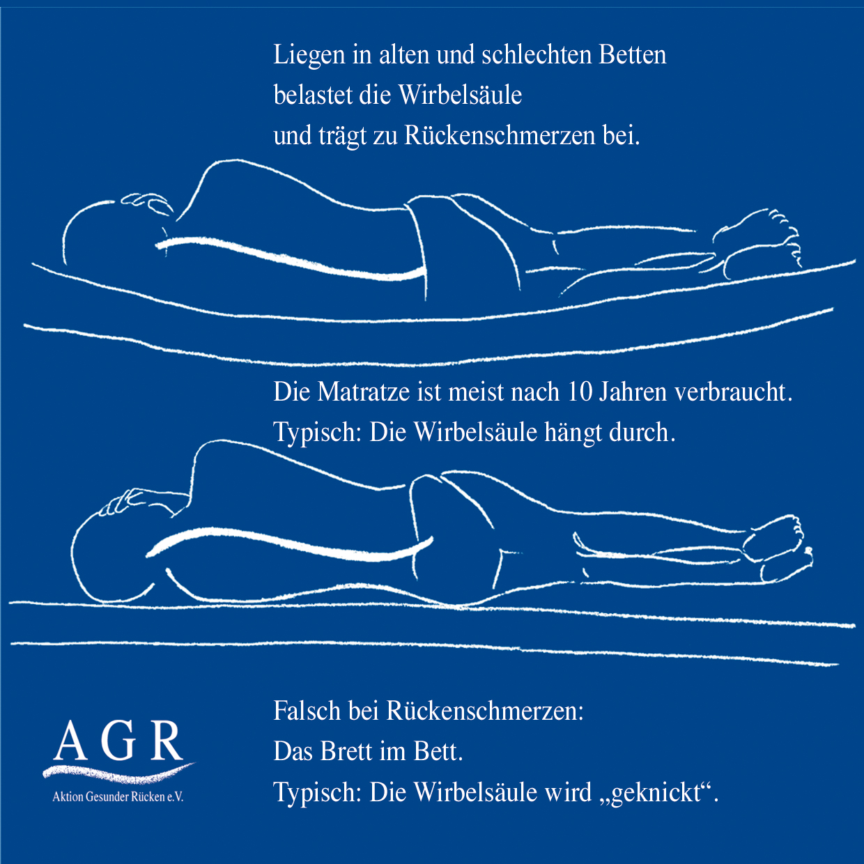 Die Aktion Gesunder Rücken e. V. befasst sich seit ihrer Gründung im Jahr 1995 mit der Prävention und Therapie der Volkskrankheit Rückenschmerzen. Eine wichtige Entscheidungshilfe für Verbraucher stellt das AGR-Gütesiegel „Geprüft & empfohlen“ dar. Alltagsgegenstände aus verschiedenen Bereichen, unter anderem Bettsysteme, Sitzmöbel und Freizeitgegenstände können nach strenger Überprüfung durch ein medizinisch-therapeutisches Expertengremium mit dem AGR-Gütesiegel als besonders rückengerecht ausgezeichnet werden.