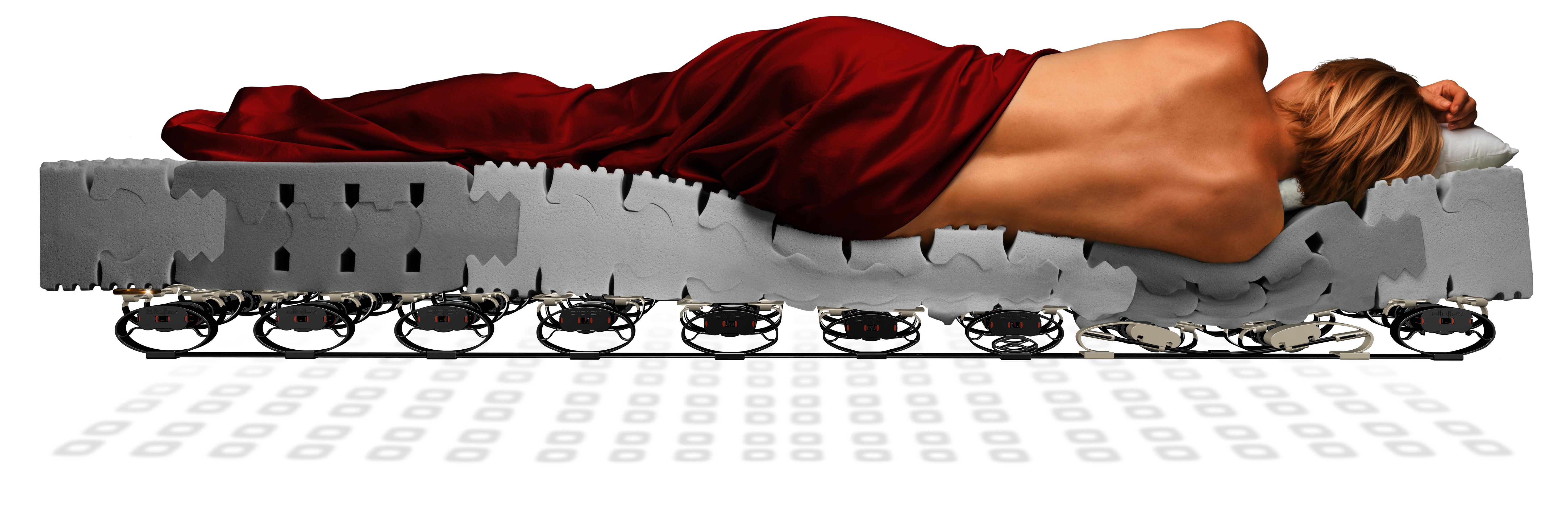 Doch wie ist es machbar, dass ein Bettsystem für verschiedene Schläfer mit unterschiedlicher körperlicher Konstitution und individuellem Schlafverhalten geeignet ist? Dazu sollte das Bett über eine einstellbare Unterfederung verfügen. Auf dieser Unterfederung liegt eine anpassungsfähige Matratze, die die Bedürfnisse des Schläfers berücksichtigt und die zusammen mit der Unterfederung eine perfekte Einheit bildet. Dieses System garantiert in jeder Haltung und jede Nacht die bestmöglichen Anpassungs-, Trage- und Stützfähigkeiten. Es unterstützt die unbewussten, natürlichen und erforderlichen nächtlichen Bewegungsabläufe und Lageveränderungen. Das ist u. a. besonders wichtig, damit sich unsere Bandscheiben bestens regenerieren und „ernähren“ können.