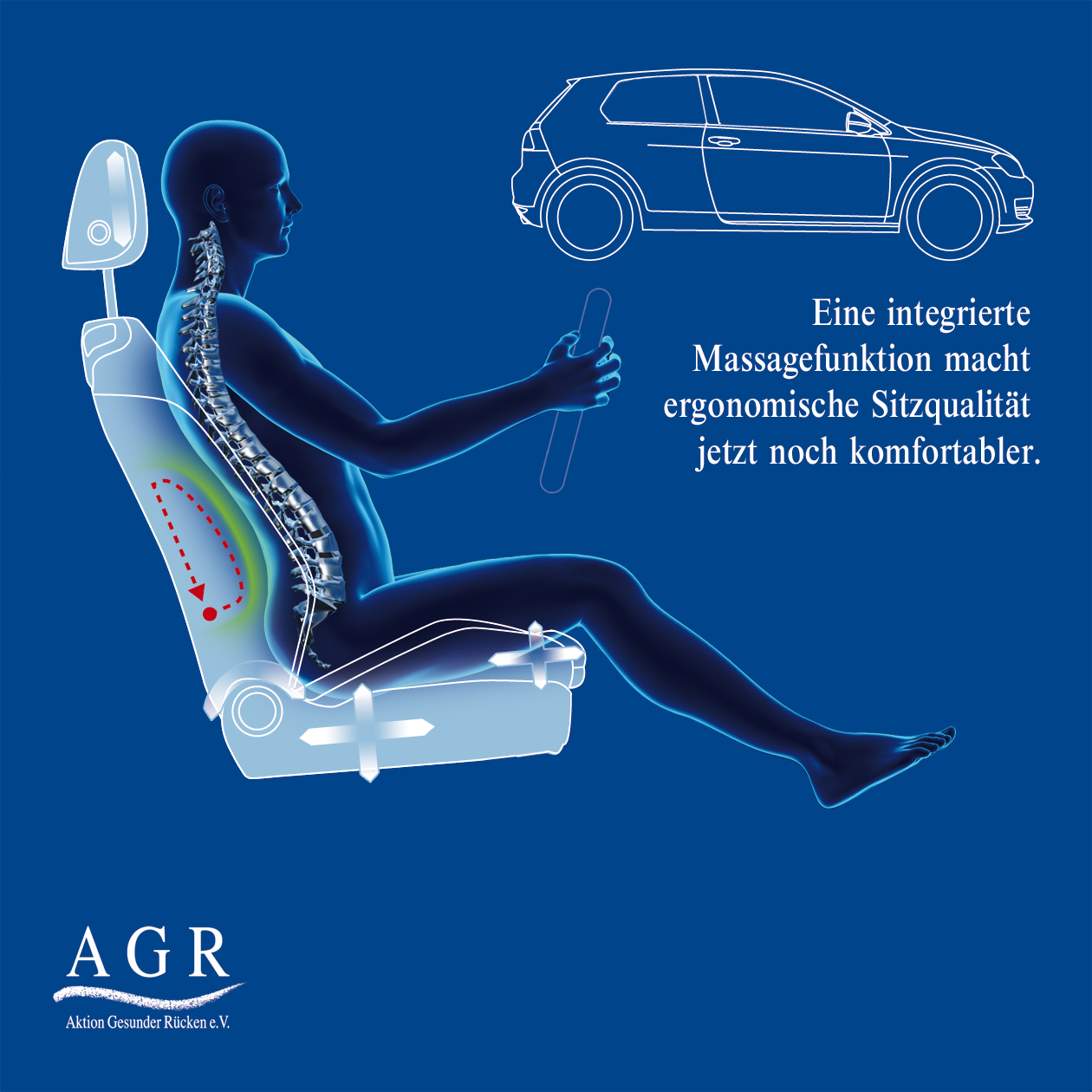 Auch ein neues Auto kann zur Rückenschmerzfalle werden, wenn die Autositze nicht rückengerecht sind. Erfreulicherweise gibt es immer mehr Autohersteller, die ergonomische Sitze verbauen, doch sie sind bis heute noch kein Standard. Die Aktion Gesunder Rücken (AGR) e. V. empfiehlt deswegen, die Sitze beim Fahrzeugkauf genau zu analysieren und zu testen und im Idealfall sogar einen AGR-zertifizierten Sitz zu wählen. Wenn kein Neuwagenkauf ansteht, sind rückengerechte Nachrüstsitze eine gute Lösung. Weitere Infos: www.agr-ev.de/autositz