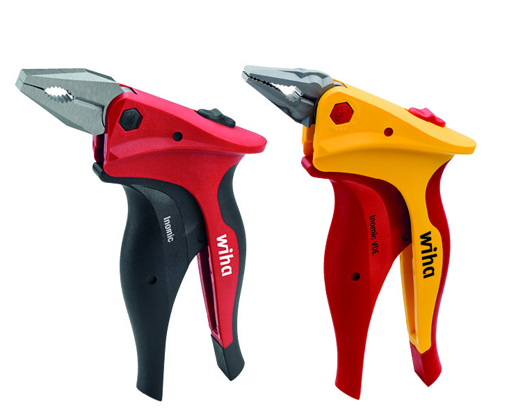 Was unterscheidet eine ergonomische Zange von einer Standard-Zange? Das oberste Gebot lautet: Die Zange muss abgewinkelt sein, sodass das Handgelenk beim Arbeiten gerade bleibt! Durch die Entlastung des Handgelenks können Fehlhaltungen wie das Hochziehen der Schultern und daraus resultierende Verspannungen im Schulter-Nacken-Bereich verhindert werden. Gleichzeitig kann die Kraft beim Arbeiten effizienter auf das Werkzeug übertragen werden. Das Inomic Zangengriffkonzept von Wiha verfügt nicht nur über einen solchen abgewinkelten „Pistolengriff“, sondern darüber hinaus über einen Abgleitschutz, Verriegelungsmechanismus und einen ausgeklügelten Materialmix aus ergonomisch geformtem Weichkunststoff im drucksensitiven Bereich und glasfaserverstärkten Kunststoff im Werkzeugkörper. So wird auch bei langfristiger Nutzung der Bewegungsapparat geschont und Beschwerden vorgebeugt.