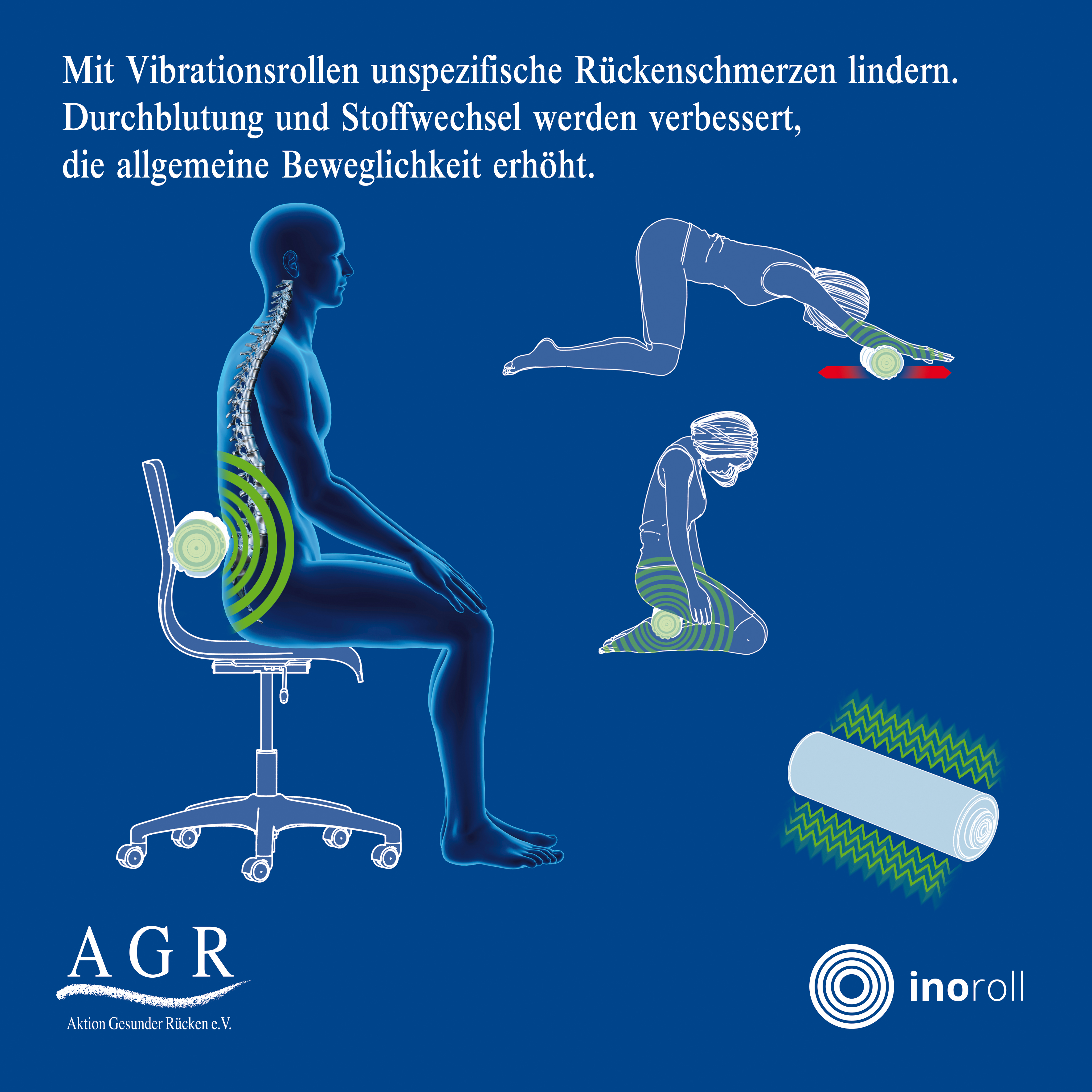 Aufgrund ihrer förderlichen Wirkung für die Rückengesundheit trägt die inoroll® das Gütesiegel der Aktion Gesunder Rücken (AGR) e. V. Damit zeichnet die AGR besonders rückengerechte Alltagsgegenstände aus. Um es zu erhalten, musste die Vibrationsrolle eine Vielzahl von Kriterien erfüllen. Eine solche Rolle muss unter anderem