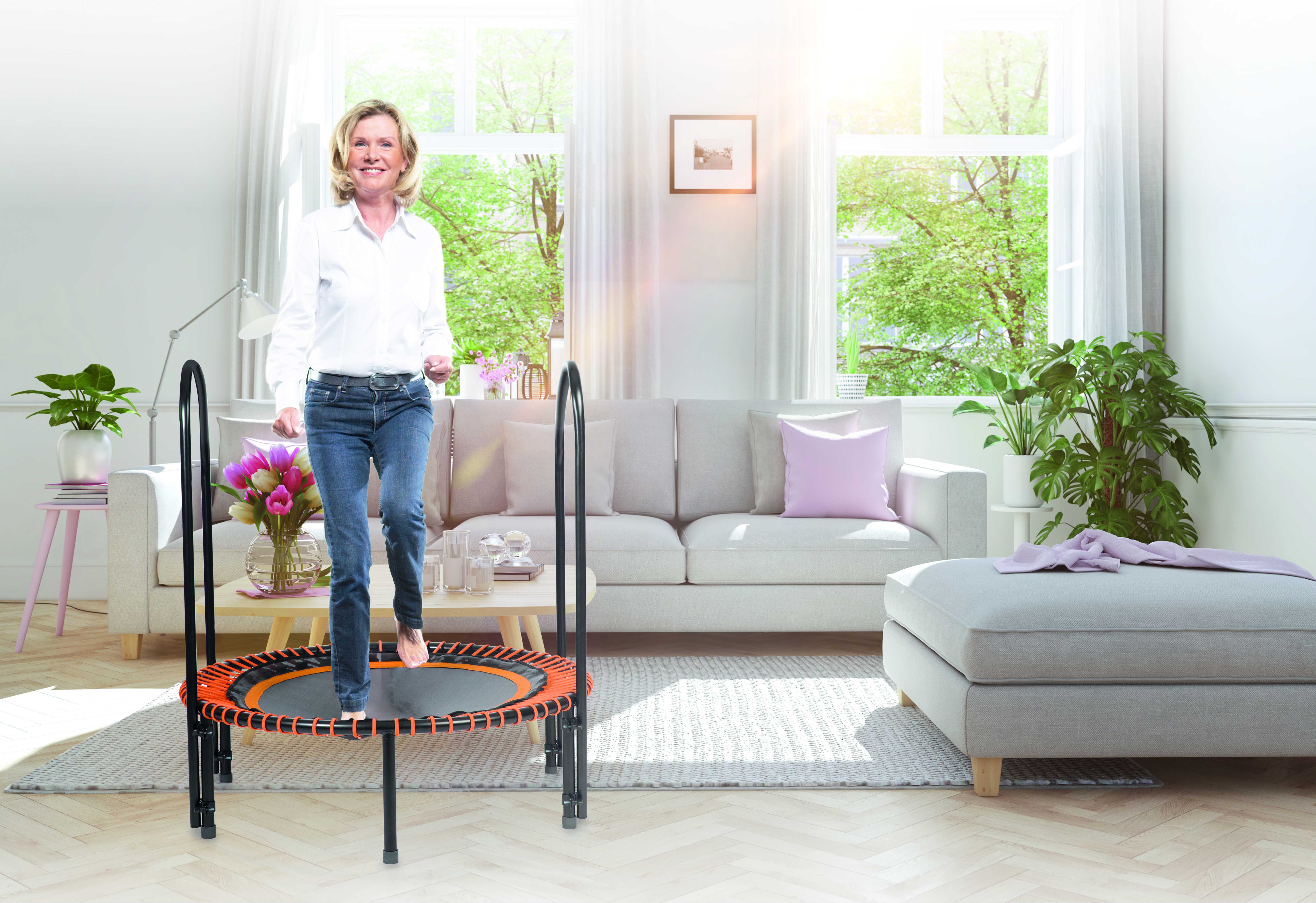 Im ersten Moment klingt es nach einer Sportart für Kinder: Trampolintraining. Doch vor allem ältere Menschen profitieren von den sanften Schwingungen. Die federnden Bewegungen trainieren alle Muskelgruppen, regen den Stoffwechsel an und verbessern die Beweglichkeit sowie den Gleichgewichtssinn. Zudem regen die regelmäßigen Druck- und Zugreize beim Trampolinspringen den Knochenstoffwechsel an, was den Verlauf einer Osteoporose positiv beeinflussen kann. Die Aktion Gesunder Rücken empfiehlt Minitrampoline von bellicon® (www.agr-ev.de/trampolin). Ein optional montierbarer Haltegriff sorgt für zusätzliche Stabilität.