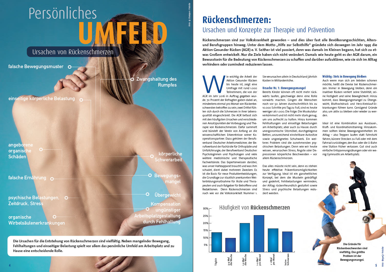 Neben Informationen über die häufigsten Ursachen von Rückenschmerzen steht in der neuen Ausgabe die Prävention und Therapie von Beschwerden im Fokus. Eine wesentliche Rolle spielen dabei AGR-zertifizierte Alltagsgegenstände, die sich als besonders rückengerecht qualifiziert haben und das Gütesiegel „Geprüft & empfohlen“ tragen. Unabhängige Experten bereichern zudem die einzelnen Themengebiete mit ihrem Fachwissen und geben praktische Tipps für mehr Rückengesundheit im Alltag. Die besten Übungen für einen starken Rücken können ganz unkompliziert zuhause nachgeturnt werden und helfen die Muskulatur zu stärken und dadurch Schmerzen vorzubeugen.