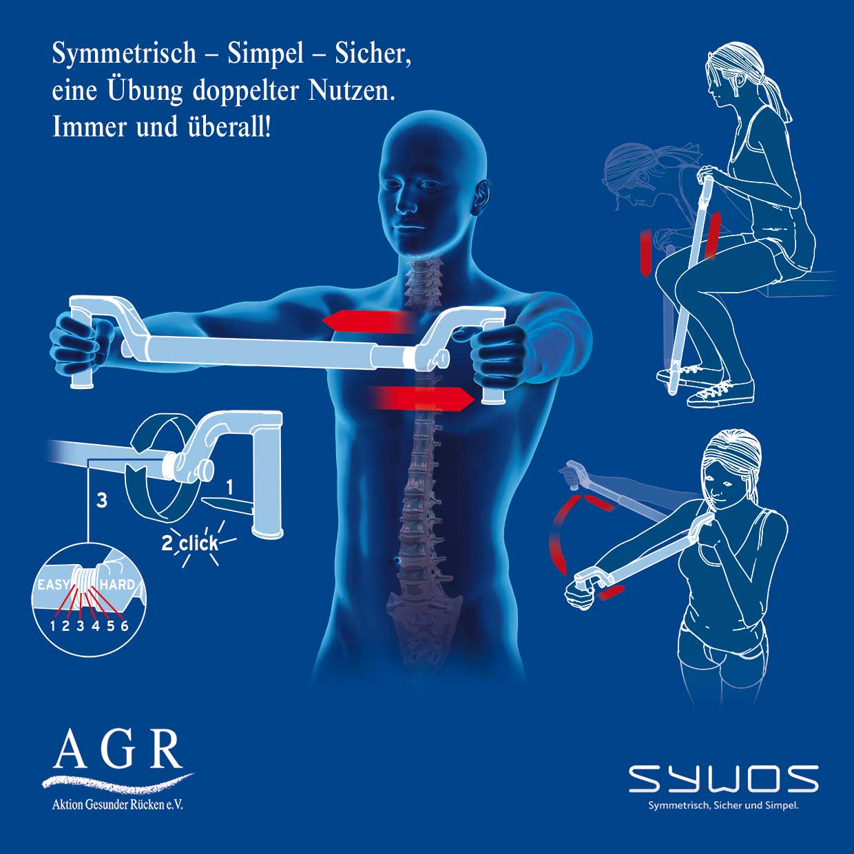 Um gezielt Kraft aufzubauen und Rückenschmerzen vorzubeugen, ist ein Im- und Expander, wie etwa der SYWOS ONE, ein praktisches Hilfsmittel. Das Besondere: Sowohl beim Auseinanderziehen, als auch beim Zusammendrücken sind die Muskeln durch Widerstände gefordert. Schon mit leichten Übungen ist ein effektives Muskeltraining für den ganzen Oberkörper möglich. So wird ein symmetrisches Training für Arme, Rumpf und Schultern möglich. Individuell einstellbare Widerstände setzen neue Trainingsreize und können dem eigenen Fitnesslevel angepasst werden. Egal ob im Stehen, Liegen und Sitzen – die Anwendungsmöglichkeiten sind zahlreich. Ein weiteres Plus: Sogar unterwegs ist der Im- und Expander ein guter Begleiter. Durch das Abschrauben der Handgriffe lässt es sich in (fast) jeder Tasche optimal verstauen. Zusätzliche Informationen sind unter www.agr-ev.de/ex-und-impander zu finden.