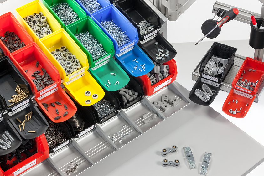 Im Zentrum des Industriearbeitsplatzes steht das Tischsystem. Idealerweise ermöglicht es eine flexible Nutzung im Stehen und Sitzen und damit wohltuende Haltungswechsel. Module zur Werkzeugbereitstellung sorgen außerdem dafür, dass alle nötigen Werkzeuge in unmittelbarer Reichweite des Arbeitenden verstaubar und griffbereit sind. Durch kurze Wege wird die Effizienz gesteigert und Schmerzen durch Verdrehungen sowie Überstreckungen haben keine Chance.
