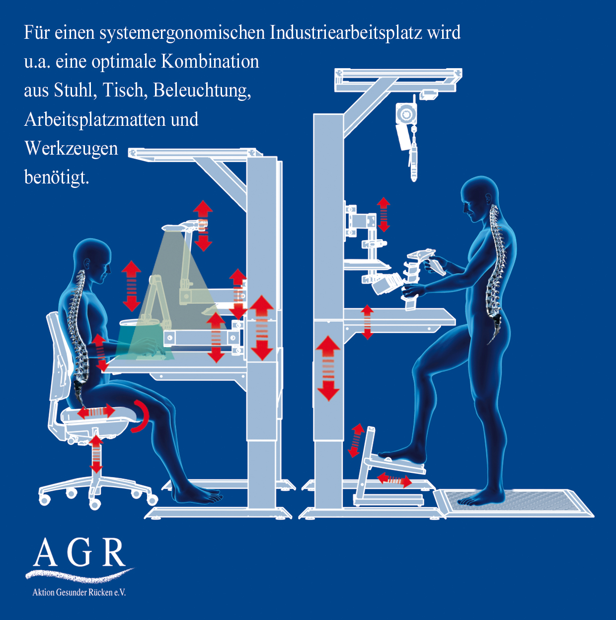 (lifepr) (Bremervörde, 15.05.2019) Egal ob beim klassischen Bürojob oder am Industriearbeitsplatz – unser Rücken erfährt am Arbeitsort oft nicht die nötige Beachtung. Dabei sind Rückenschmerzen die häufigste Ursache für Krankmeldungen. Besonders strapaziös ist die Arbeit für die vielen Arbeitnehmer in der Produktion an einem Industriearbeitsplatz. Trotz der fordernden Arbeit spielen Rückenfreundlichkeit und Ergonomie kaum eine Rolle – auch weil viele Arbeitgeber Kosten sparen wollen. Doch ein gut ausgestatteter Arbeitsplatz zahlt sich aus: Ausfallzeiten sinken und die Arbeitnehmer sind motivierter, leistungsfähiger und zufriedener. Entscheidend bei der Gestaltung des Arbeitsplatzes ist dabei immer das Gesamtkonzept. Wichtige Komponenten sind etwa Arbeitsplatzmatte, Werkzeug, Industriearbeitsstuhl, Arbeitstischsystem und Beleuchtung. Die Aktion Gesunder Rücken e. V. hat erstmals ein rückengerechtes Industriearbeitsplatz-Konzept mit dem AGR-Gütesiegel ausgezeichnet und erklärt, worauf es jeweils ankommt.