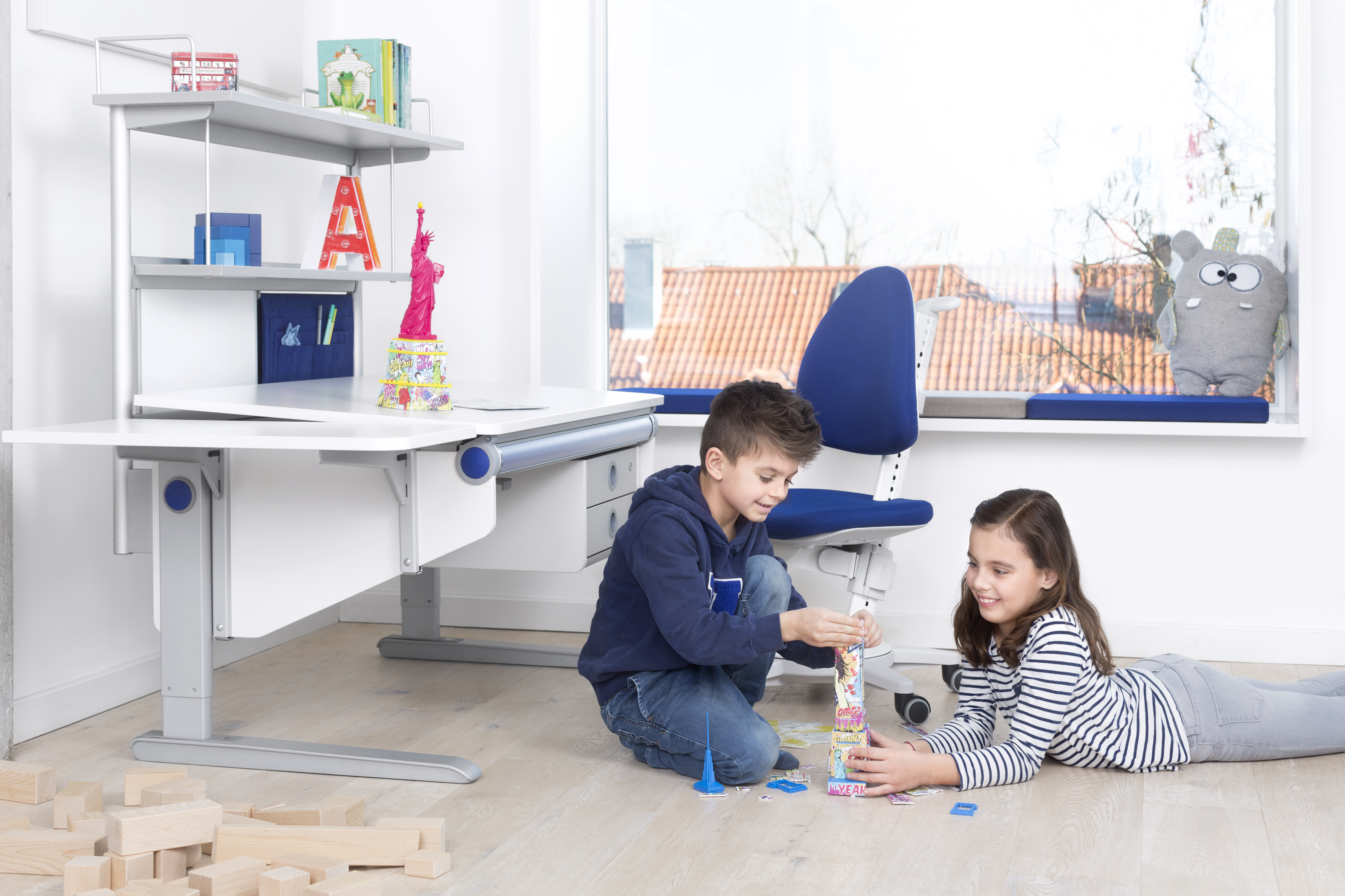Immer häufiger ist auch schon bei Kindern im Unterricht oder bei den Hausaufgaben eine typische „Bürohaltung“ erkennbar – vornübergebeugtes Sitzen mit wenig Abwechslung. Das kann Folgen für die Rückengesundheit haben, denn der Körper befindet sich noch im Wachstum. Besser: Auch im Sitzen in Bewegung bleiben, um den Rücken zu schonen und die Konzentration zu steigern. Besonders einfach geht das mit ergonomischen Schreibtischen und –stühlen, die mit dem unabhängigen Gütesiegel der Aktion Gesunder Rücken e. V. zertifiziert sind. Bewegliche Sitzflächen ermöglichen aktives Sitzen. Durch einfache Verstellbarkeit können Tisch und Stuhl aufeinander abgestimmt und individuell auf die Bedürfnisse des Kindes angepasst werden. Lernpausen zum Austoben und viel Bewegung im Alltag dürfen natürlich nicht fehlen.