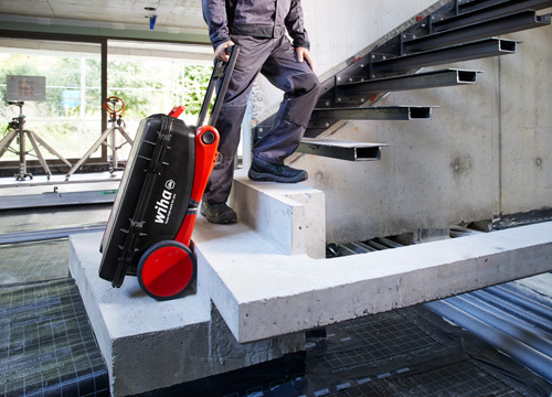 Oft ist schon der Transport eines schweren Werkzeugkoffers wenig komfortabel und durch die einseitige Belastung eine Gefahr für den Rücken. Der robuste und multifunktionale Wiha Werkzeugkoffer XXL III hingegen verfügt über große und speziell konstruierte Räder und kann dadurch ganz bequem wie ein Trolley gezogen werden – selbst auf unwegsamem Gelände oder über Treppen hinweg. Ein weiterer Pluspunkt sind die vier Füße, die sich ein- und ausklappen lassen. Sie ermöglichen, dass der Koffer erhöht steht und beim Griff zum Werkzeug nicht jedes Mal tiefes Bücken notwendig ist. Das schont vor allem den unteren Rücken. Wird der Koffer verschlossen, kann er auch als mobiler Montagetritt genutzt werden. Eine ausziehbare Trittstufe sorgt dabei für zusätzlichen Komfort und Sicherheit. Zudem sind auf dem robusten Kofferdeckel auch kleinere Handwerkarbeiten wie etwa Sägen möglich. Integrierte Stoßdämpfer verhindern außerdem in geöffnetem Zustand ein ungewolltes Schließen des Deckels und minimieren so das Verletzungsrisiko. Neben der vielfältigen und bequemen Handhabung, punktet der Koffer auch durch seinen hochfunktionalen Inhalt.
