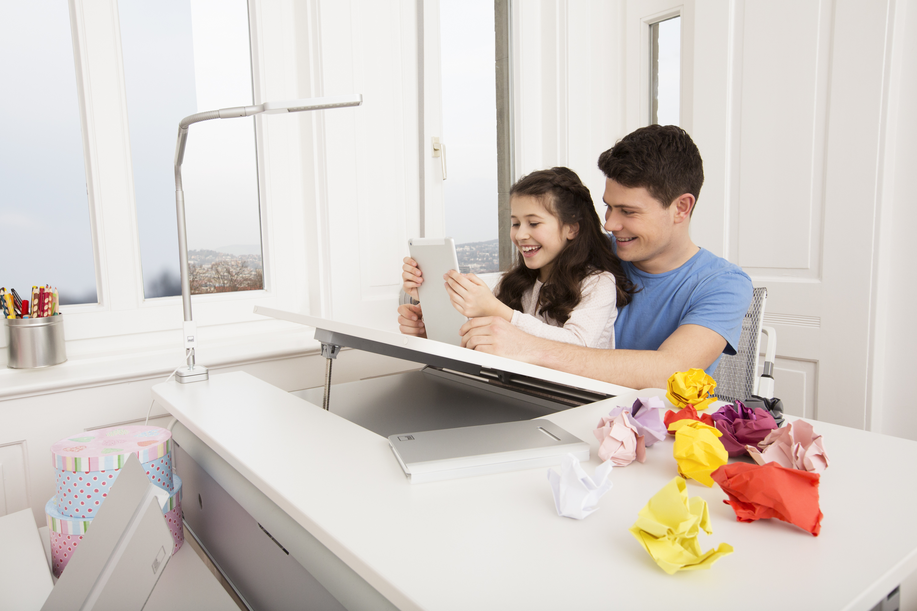 Die hochwertigen Sitz- und Schreibtischmöbel von moll sind wahre Alleskönner und für kleinere Kinder, Schüler und Teenager gleichgut geeignet. Die Schreibtische passen sich an die unterschiedlichen Körpermaße und -proportionen an und lassen sich in der Höhe und Neigung sowie im gesamten Format einstellen – und das stufenlos. Mit der „Jojo“ Verstellung lässt sich der Schreibtisch unkompliziert und zentimetergenau einstellen. Dank des umfangreichen Zubehörs ist er darüber hinaus jedem Einsatzzweck gewachsen.