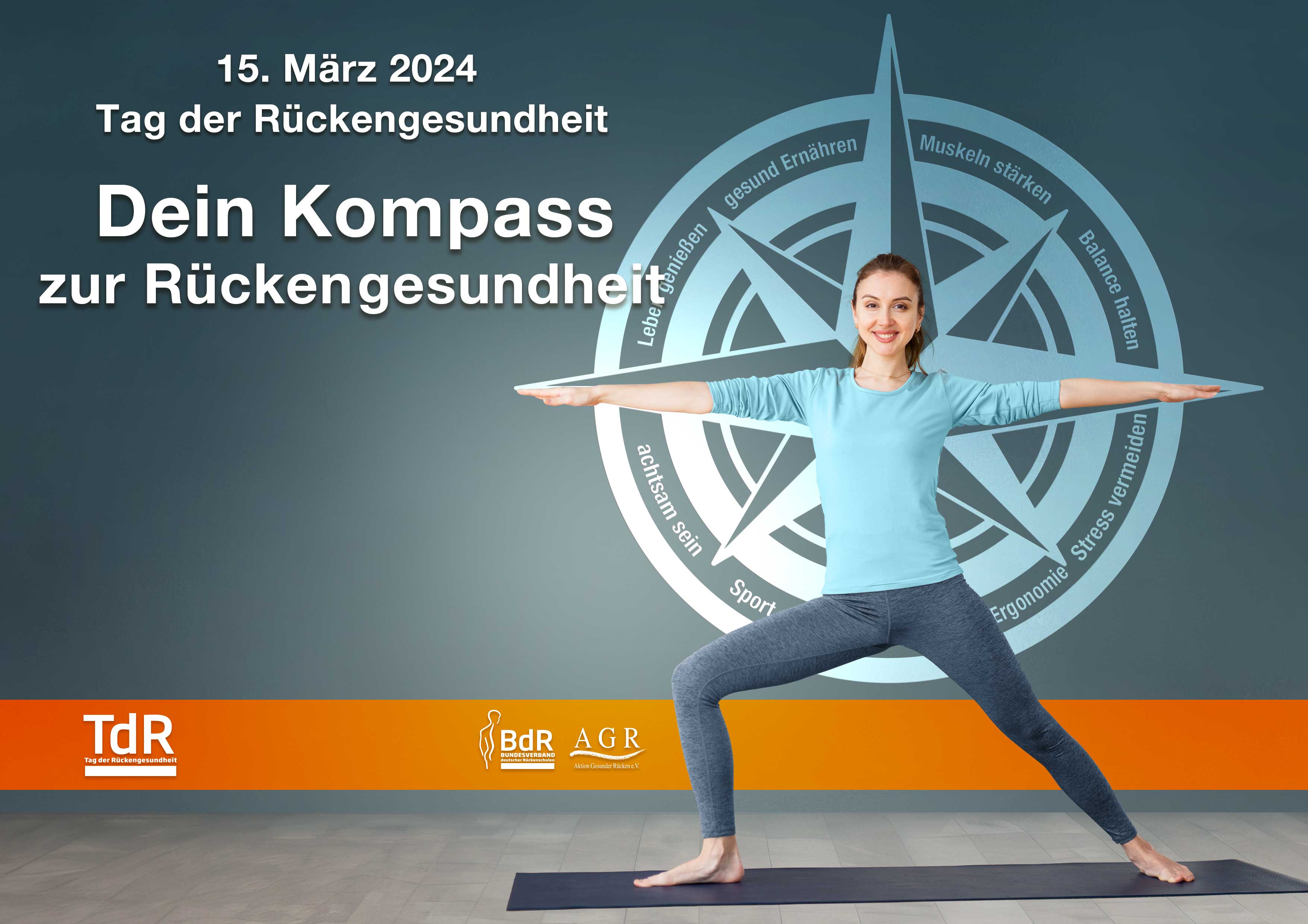 Die Aktion Gesunder Rücken (AGR) e. V. und der Bundesverband deutscher Rückenschulen (BdR) e. V. wollen dies aktiv ändern: Gemeinsam veranstalten sie jährlich am 15. März den Tag der Rückengesundheit, um auf die Möglichkeiten zur Vorsorge und Behandlung von Rückenschmerzen hinzuweisen. Betroffene suchen oft monate- und sogar jahrelang nach wirksamen Behandlungen und Lösungen für ihre Schmerzen. „Mit dem diesjährigen Motto `Dein Kompass zur Rückengesundheit´ wollen wir den Menschen im Dschungel unzähliger Angebote und Empfehlungen Orientierung geben“, sagt Detlef Detjen, Geschäftsführer der AGR. „Jeder Mensch ist einzigartig und muss seinen individuellen Weg finden.“ Im Mittelpunkt des diesjährigen Aktionstages stehen zehn Empfehlungen, die wissenschaftlich untermauert sind. Praktisch erlernen und erleben kann man diese in zahlreichen Vor-Ort- und Online-Veranstaltungen, die rund um den 15. März bundesweit stattfinden.