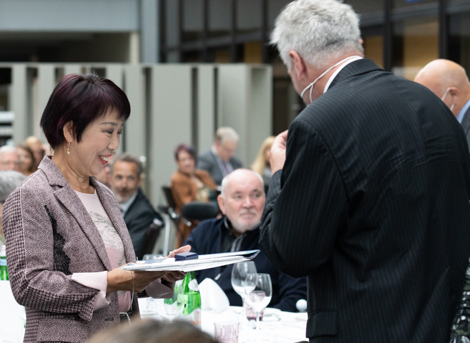 „Ihre aufbauende, anpackende Art vermittelt Sicherheit und Lebensmut“, würdigte Christian Wulff, Schirmherr der DMSG und Bundespräsident a.D., Yeonghee Krug in seiner Laudatio. „Herausragend sind ihr Elan und ihre Ausdauer. Mit großem Herz nutzt sie ihr Netzwerk, um MS-Betroffene zu unterstützen.“