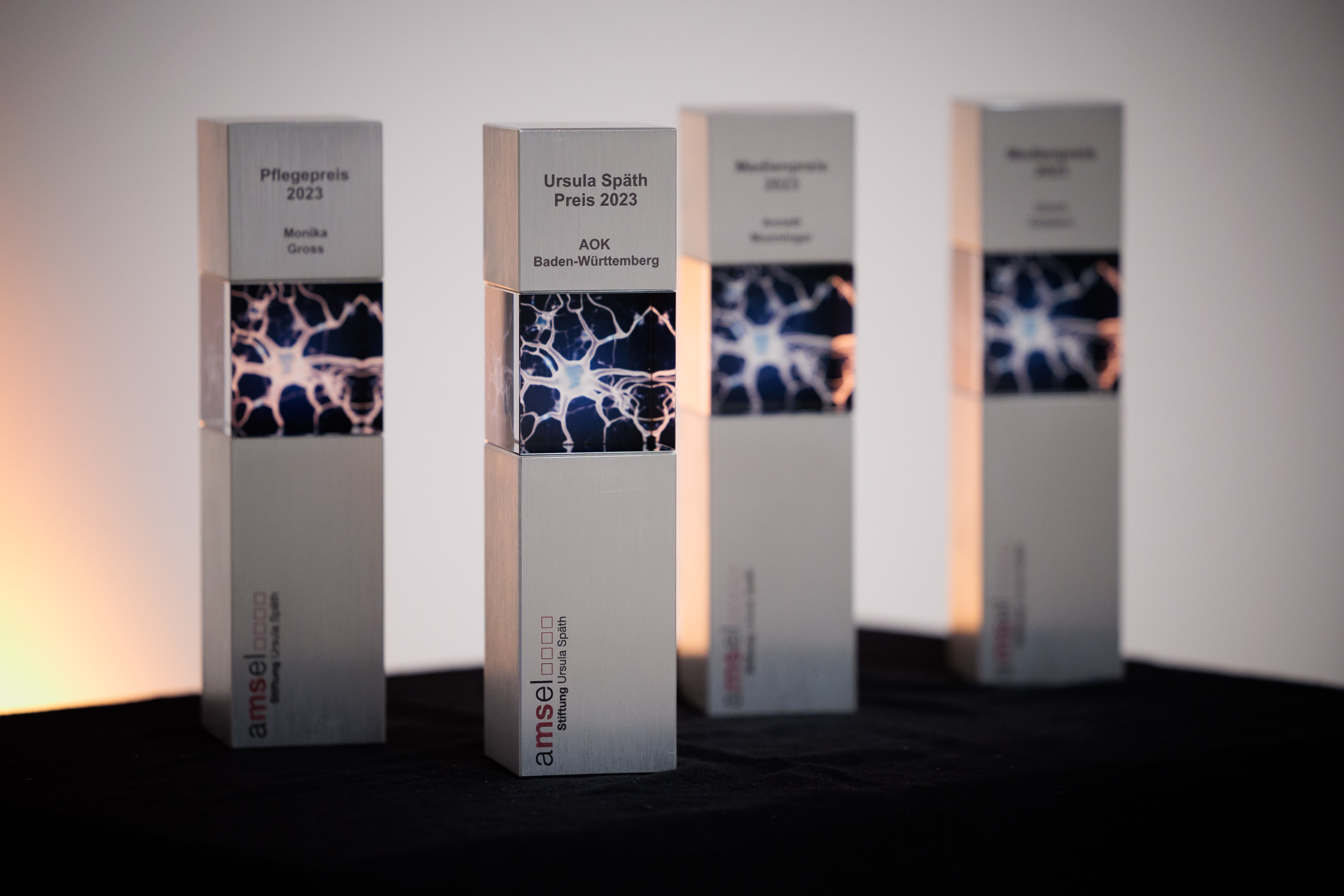 (lifepr) (Stuttgart, 27.11.2023) Die AMSEL Stiftung Ursula Späth verleiht jedes Jahr drei dotierte Preise an Menschen, die mit ihrem Wirken die Lebenssituation Multipler-Sklerose-Erkrankter und ihrer Angehörigen nachhaltig verbessern und die chronische Krankheit MS in den Fokus der Öffentlichkeit rücken. Bei der 30. Preisverleihung am 24. November 2024 im Porsche-Museum Stuttgart wurde der Ursula Späth-Preis an die AOK Baden-Württemberg verliehen. Der Preis für pflegende Angehörige ging an Monika Gross aus Waldenbuch, der Medienpreis an Annett Munninger, Fellbach sowie an Ulrich Dabbert, Reutlingen. Die AMSEL Stiftung Ursula Späth unterstützt die Arbeit der AMSEL, Aktion Multiple Sklerose Erkrankter, Landesverband der DMSG in Baden-Württemberg e.V., ideell und finanziell. Der Landesverband ist seit 1974 Fachverband, Interessenvertretung und Selbsthilfeorganisation für Menschen mit MS und ihre Angehörigen. Mehr auf www.amsel.de.