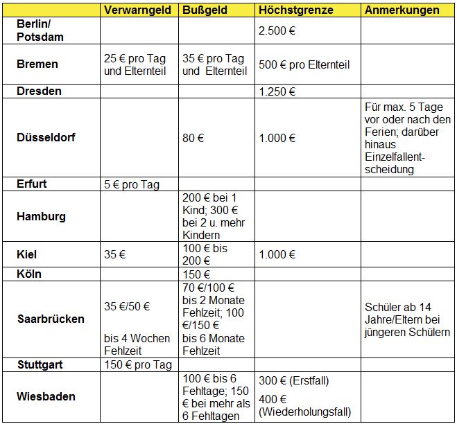Beispielhafte Schulpflichtverstöße zur Ferienzeit