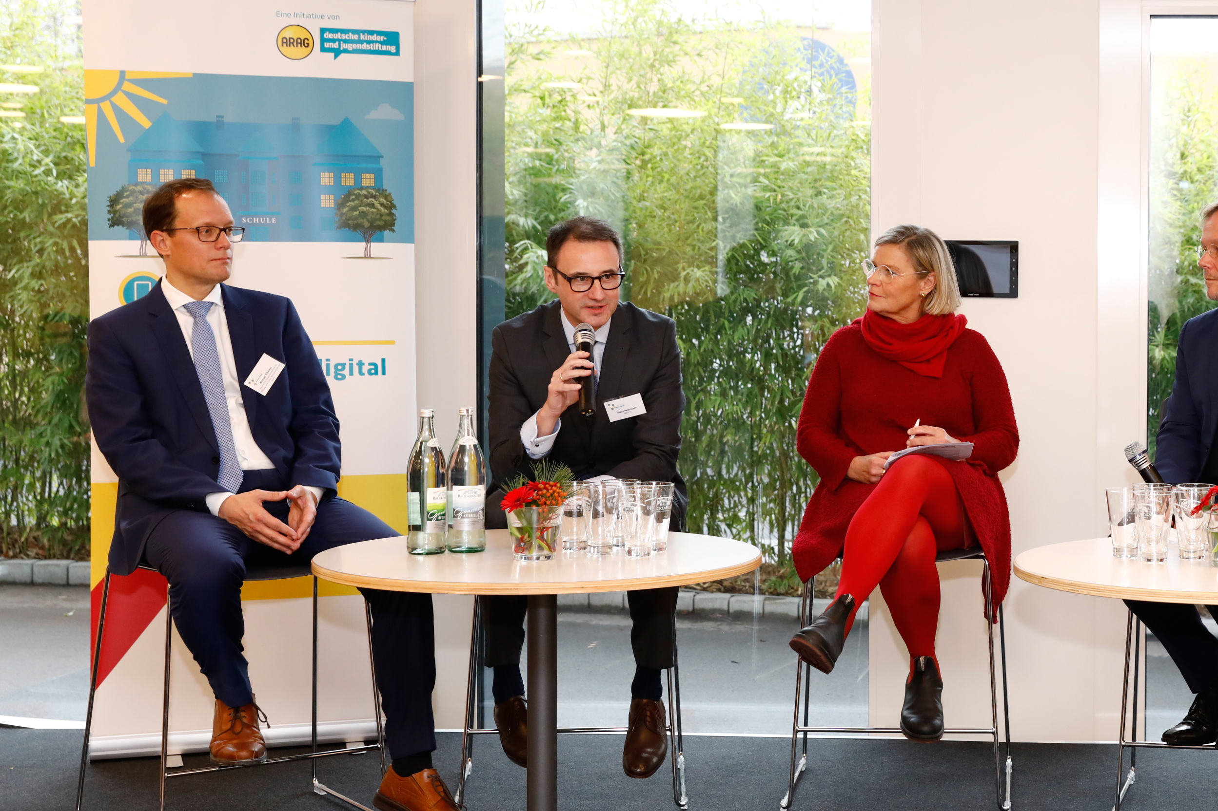 Podiumdiskussion mit Michael Rißmann, Bayerisches Staatsministerium für Bildung und Kultus, Wissenschaft und Kunst, Klaus Heiermann, ARAG SE und Dr. Heike Kahl, Deutsche Kinder- und Jugendstiftung (v. l. n. r.) Grasser