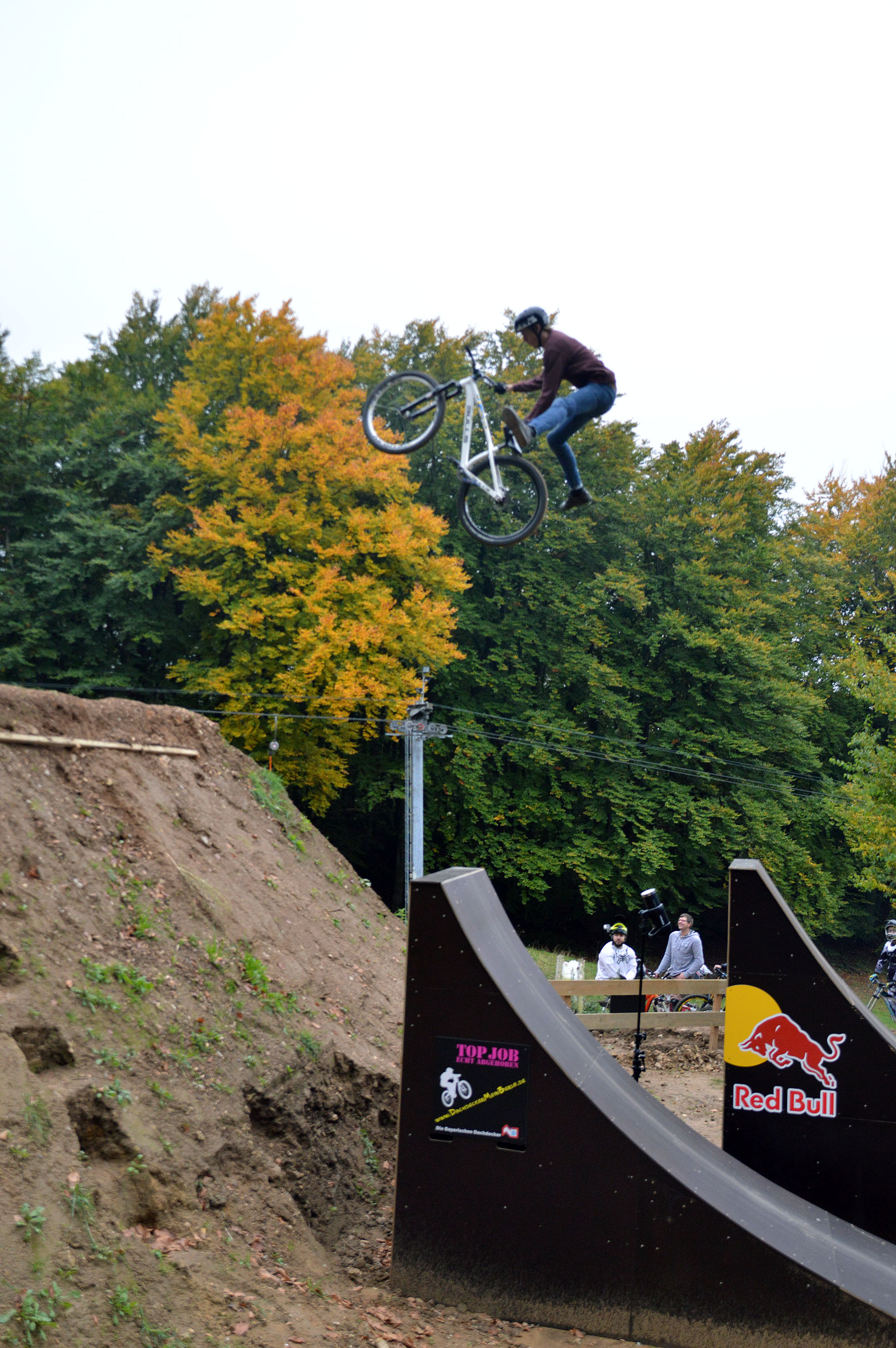 Im Rahmen einer kleinen Herbst-Session des mittelfränkischen BikeParks Osternohe bedankten sich Wrobel und seine Freunde dafür mit einer Show mit atemberaubenden Jumps.