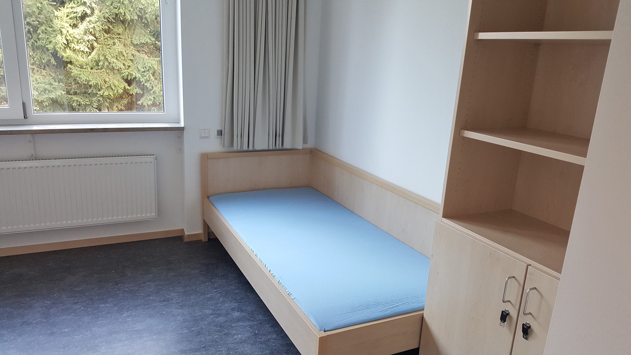 24 Zweibettzimmer mit jeweils 22 m2 Fläche und separaten Dusch-/WC-Räumen sind die geltenden Standards, die von den Sozialkassen des Dachdeckerhandwerks gefordert werden. Dazu sahen die Planungen die Übernachtungsmöglichkeit für Betreuer, 2 Freizeiträume, 2 Mehrzweckräume, 1 Clubraum, 1 Teeküche sowie 2 Büros für Heimleitung und Betreuer vor. Die gesamte Nutz- und Verkehrsfläche beträgt rund 1.300 m2 auf vier Etagen in Hanglage gegenüber der Staatlichen Berufsschule Waldkirchen.