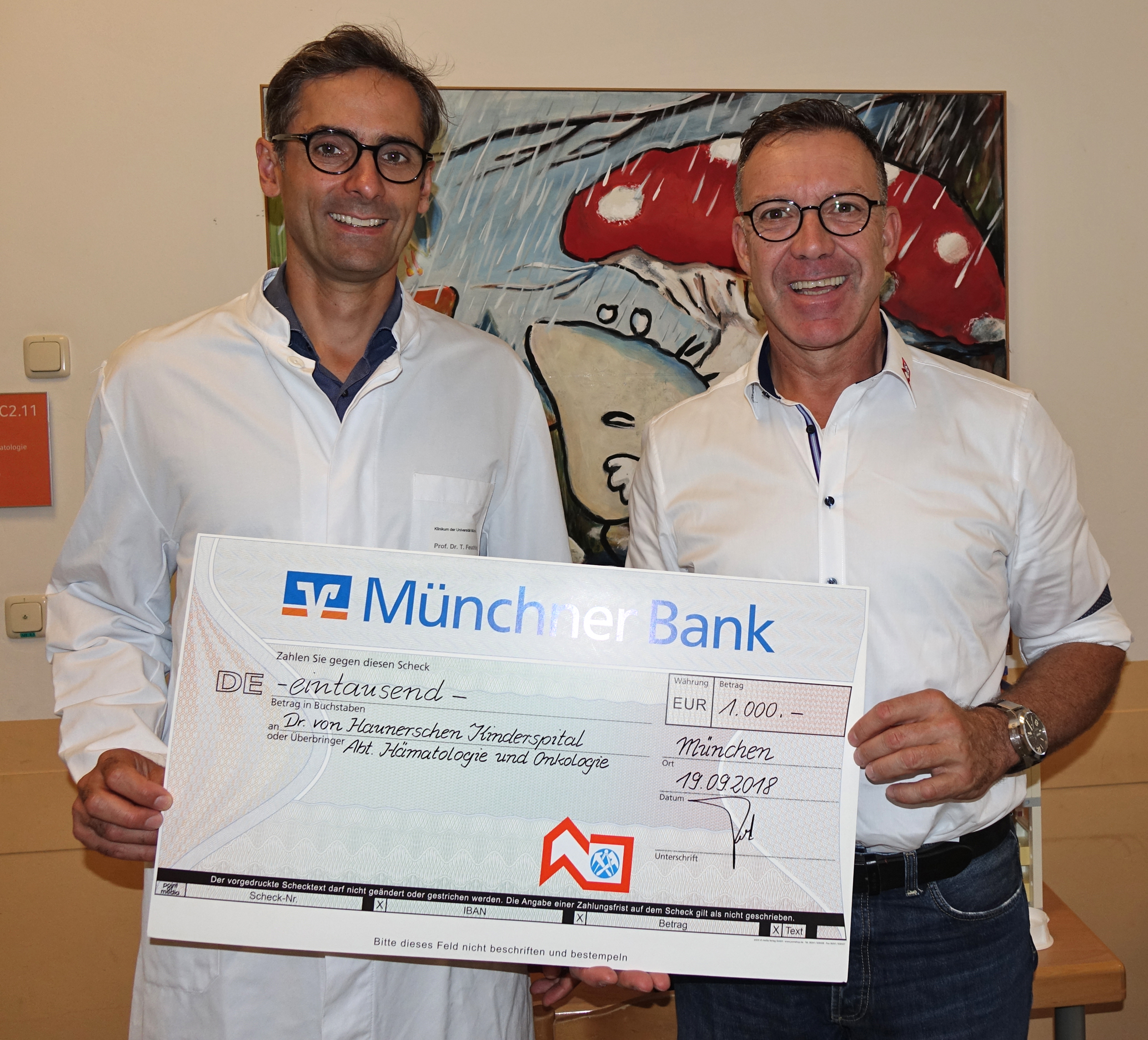 „Damit können wir mit den Kindern, die hier bei uns sind, auch in diesem Jahr wieder ein kleines „Oktoberfest“ auf der Station feiern“, freut sich Prof. Feuchtinger. „Und es bleibt genug übrig, um den Kindern vieles zu bieten, was keine Krankenkasse zahlt – kleine Lichtblicke in der Therapiezeit mit Spiel und Spaß“.