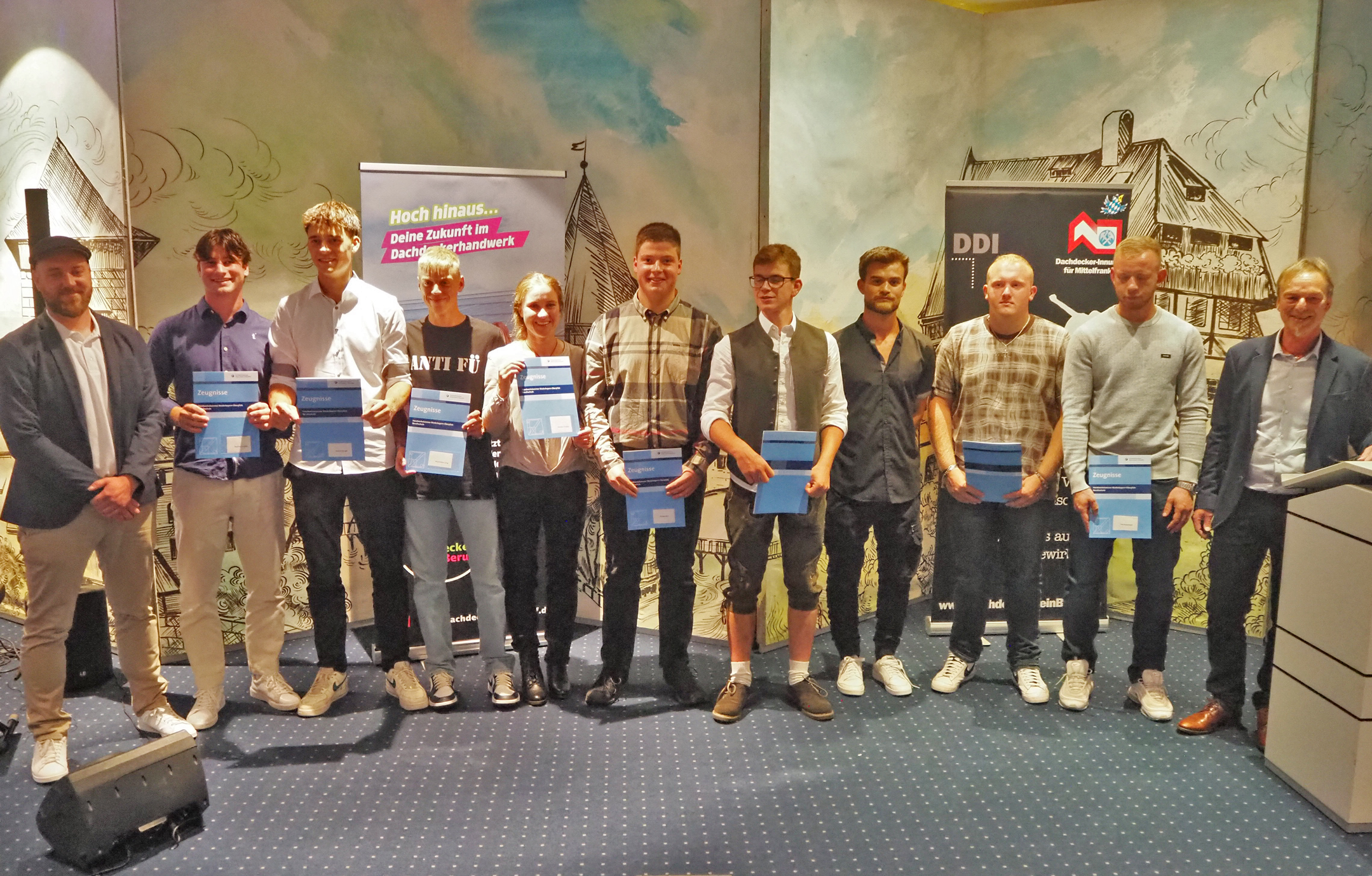 Von den insgesamt 14 erfolgreichen Auszubildenden nahmen neun an der Feier teil. Mindestens ebenso stolz auf deren Schritt von der Lehre ins Gesellenleben waren auch die Ehrengäste dieses Abends: