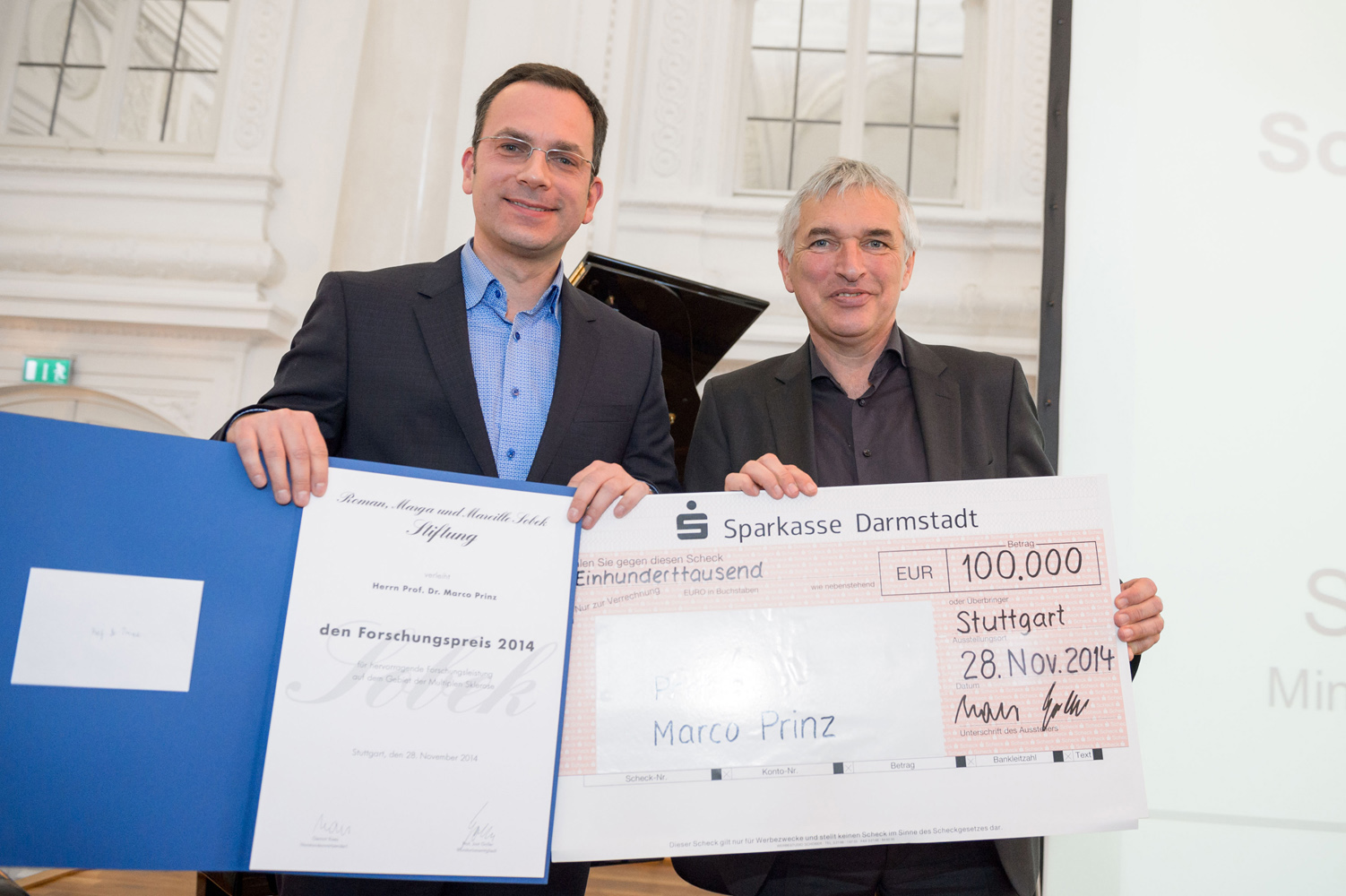 Prof. Dr. Marco Prinz (links) mit Staatssekretär Jürgen Walter vom baden-württembergischen Ministerium für Wissenschaft, Forschung und Kunst