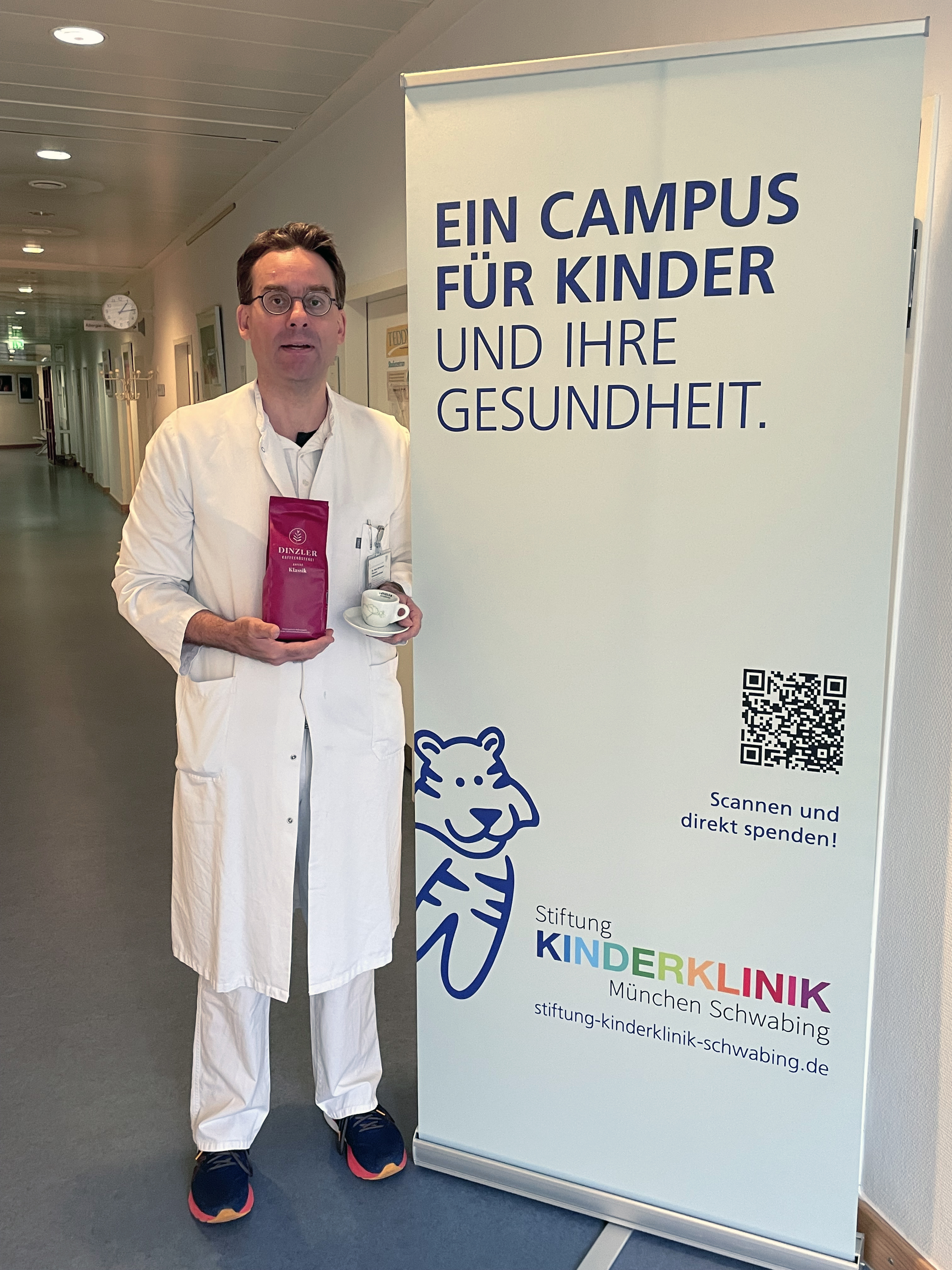 In Zusammenarbeit mit dem Klinikum Rechts der Isar und dem KfH Kuratorium für Dialyse und Nierentransplantation bietet das Nierenzentrum der Kinderklinik in Schwabing zahlreiche Therapiemöglichkeiten für Kinder mit Nierenerkrankungen an. Seit kurzem gibt es dort ein besonderes Projekt: ein Elternhaus für Familien von schwerkranken Kindern. Dieses dürfen Familienmitglieder und Angehörige nutzen, um für die Dauer der Behandlung des Kindes in unmittelbarer Nähe zu sein, ohne täglich mehrere Kilometer Fahrtweg auf sich zu nehmen. Dieses Herzensprojekt wird von der DINZLER Kaffeerösterei durch den Erlös der besonderen Tassen mit 5.000 € unterstützt.