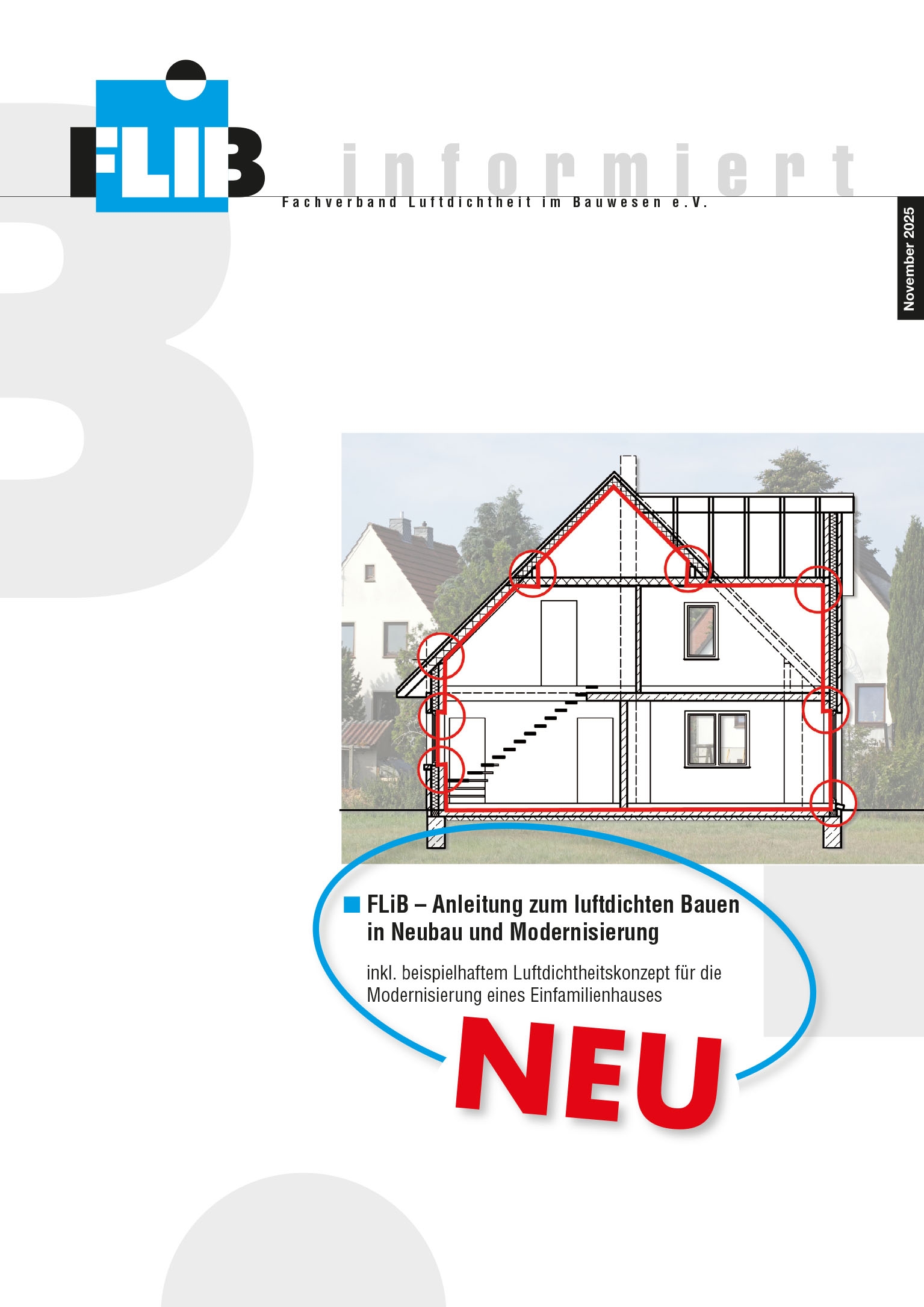 Anleitung zum luftdichten Bauen ersetzt Broschüre „FLiB – Luftdichtheitskonzept“: „FLiB – Anleitung zum luftdichten Bauen in Neubau und Modernisierung“ lautet der neue Titel der beliebten FLiB-Broschüre zum Luftdichtheitskonzept, die ab sofort in aktualisierter Fassung vorliegt. Sie beschreibt die organisatorischen Schritte auf dem Weg zu dauerhaft dichten Gebäuden – vom Luftdichtheitskonzept bis zur abschließenden Qualitätskontrolle. Abrufbar unter www.flib.de und www.luftdicht.info.