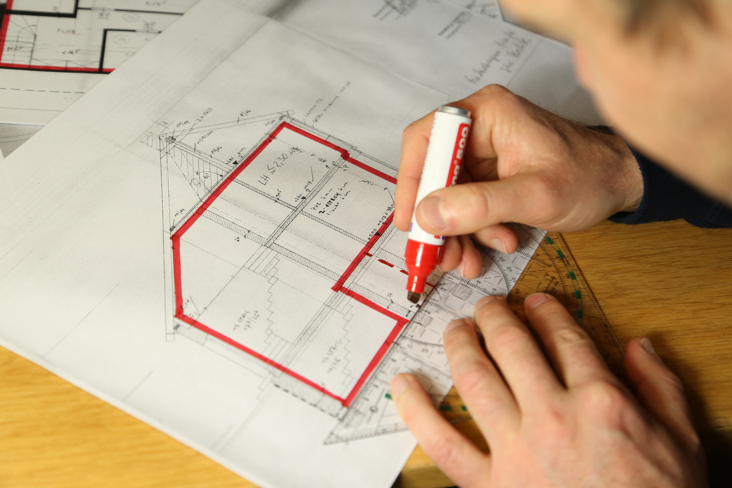 Wo soll die luftdichtende Ebene liegen, wo sind kritische Stellen? Unter www.luftdicht.info finden Projektverantwortliche Hilfestellungen für das Ausarbeiten von (zunächst) einfachen Luftdichtheitskonzepten. Foto: FLiB e.V. Abdruck bei Quellenangabe honorarfrei. Belegexemplar erbeten.