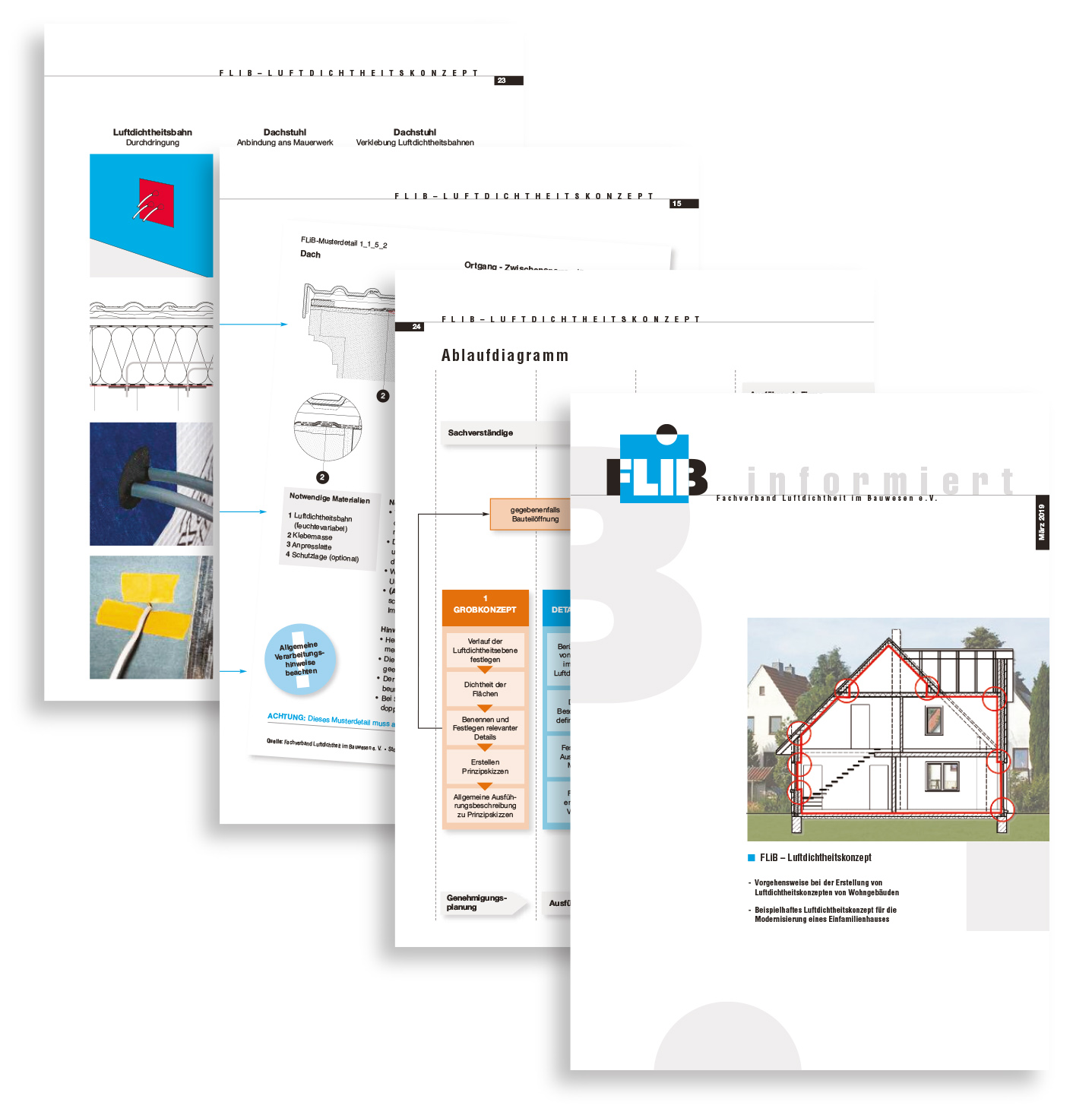 Luftdichtheitskonzept – wie funktioniert das? Eine neue Broschüre des FLiB zeichnet ein umfassendes, anschauliches und praxisnahes Bild davon, was zu einem Luftdichtheitskonzept dazu gehört und wie mit seiner Hilfe eine dauerhaft funktionstüchtige Luftdichtheitseben entsteht. Kostenfreier Download unter www.luftdicht.info und www.flib.de. Grafik: FLiB e. V. Veröffentlichung bei Quellenangabe honorarfrei. Belegexemplar erbeten.