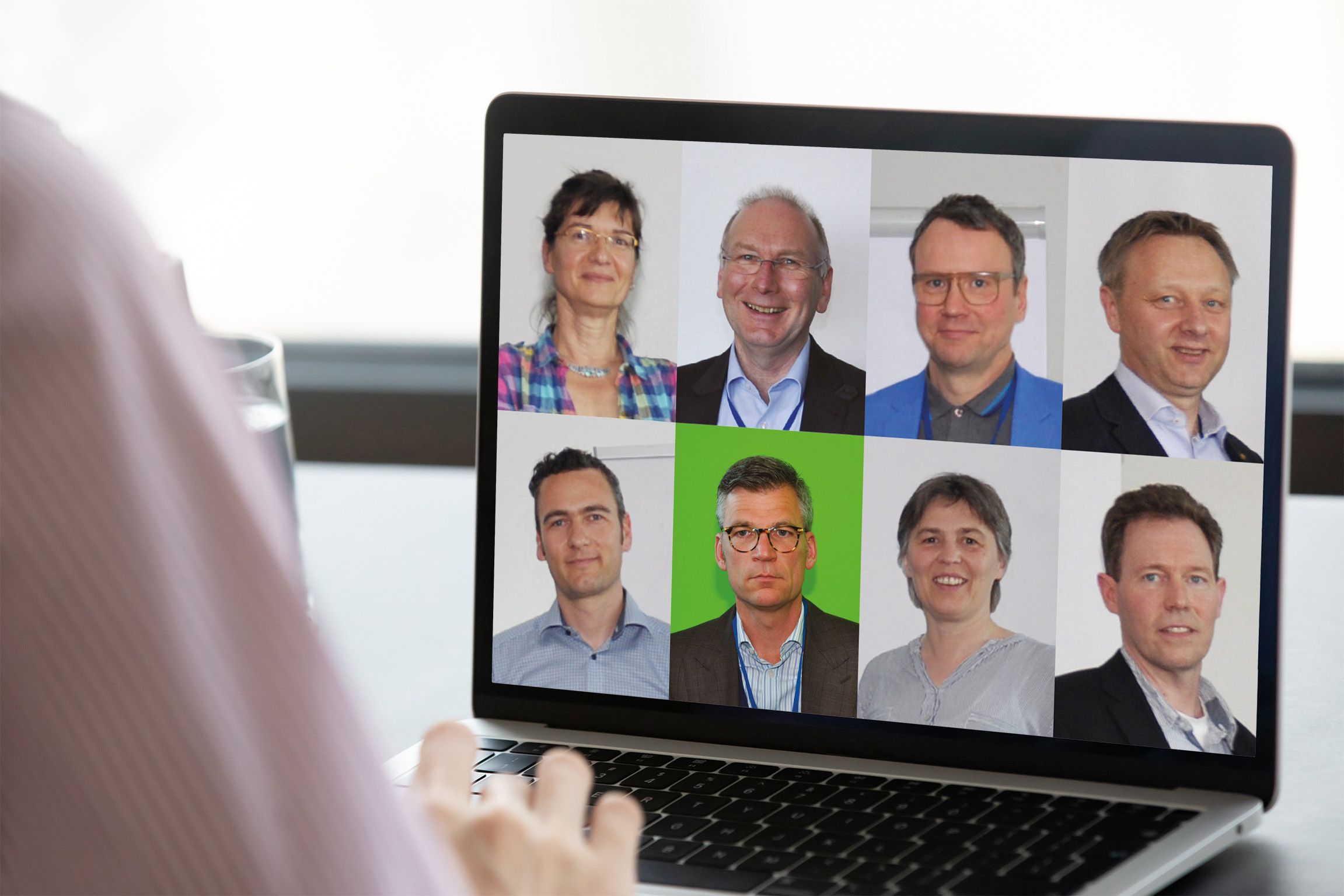 Stellten sich per Videokonferenz dem Votum der FLiB-Mitglieder: Sabine Gülker, Wilfried Walther, der Vorsitzende des Fachverbands Luftdichtheit im Bauwesen e. V., der nicht zum Vorstand gehörende Geschäftsführer Oliver Solcher, Stellvertreter Johannes Lötfering, Stefan Hückstädt, Jan Helge Schröder, Stefanie Rolfsmeier und Rüdiger Specht (von oben links nach unten rechts) / Foto: FLiB e.V./fitzkes - stock.adobe.com, Montage: FLiB e.V.