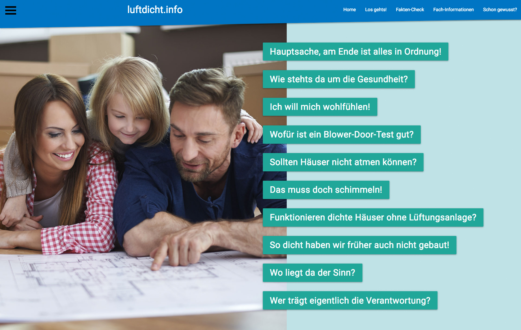 Warum (luft-)dicht bauen? Allgemein verständliche Antworten verspricht das Internet-Portal luftdicht.info. Die Seite wendet sich an alle, die neu mit dem Thema zu tun und grundsätzliche Fragen zu Sinn und Zweck des dichten Bauens und Sanierens haben.