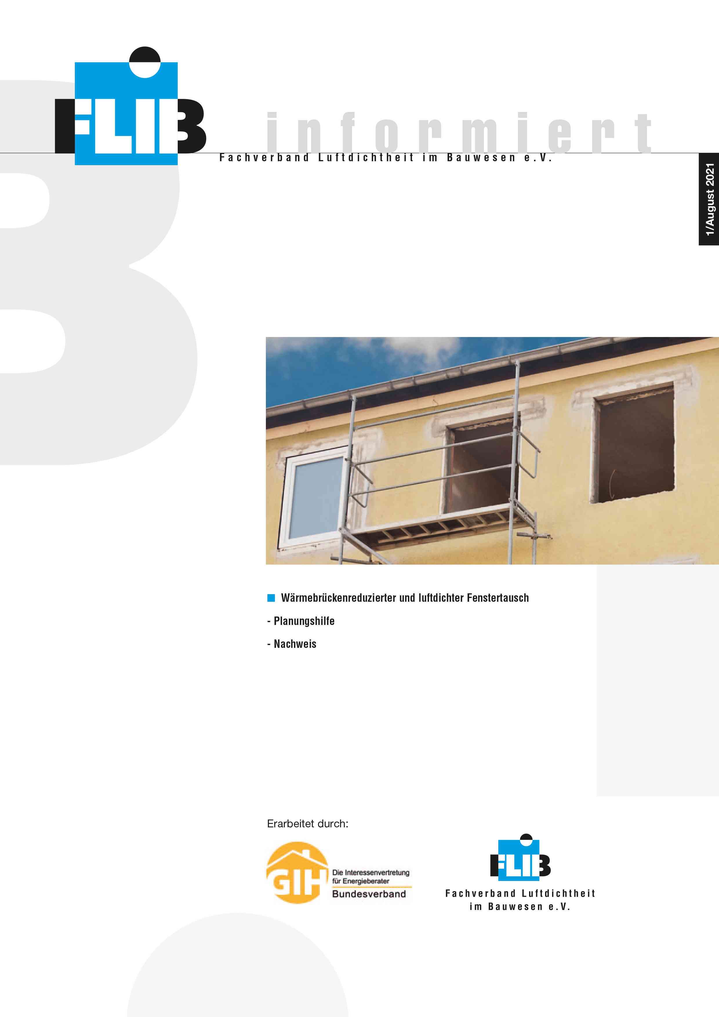 Neu und kostenlos: Hilfe beim Planen und Nachweisen des wärmebrückenreduzierten und luftdichten Fenstertauschs verspricht eine Broschüre von FLiB und GIH. Download auf www.luftdicht.info, Fachinformationen. Abbildung: FLiB e.V. Veröffentlichung bei Quellenangabe honorarfrei. Belegexemplar erbeten.