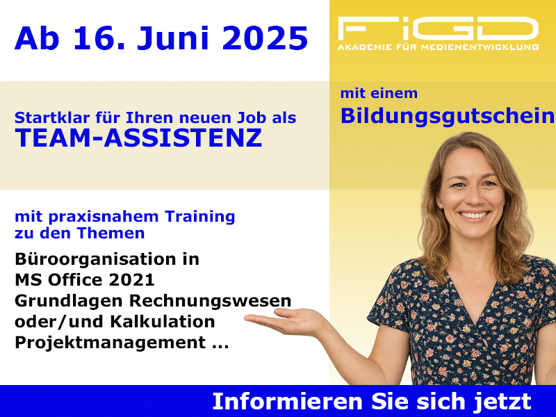 (lifepr) (Berlin, 02.06.2025) Moderne Büros brauchen Organisationstalente, die den Überblick behalten, Prozesse effizient steuern und Kommunikation mit Struktur verbinden. Die Weiterbildung zur Teamassistenz, die ab dem 16. Juni 2025 bei der FiGD Akademie startet, bereitet Sie gezielt auf diese verantwortungsvolle Rolle vor. Ob in Unternehmen, Behörden oder Agenturen – kompetente Assistenzkräfte werden branchenübergreifend gesucht. Besonders attraktiv: Die Teilnahme ist 100 % förderfähig über einen Bildungsgutschein, wie Sie unter Förderung über den Bildungsgutschein nachlesen können.