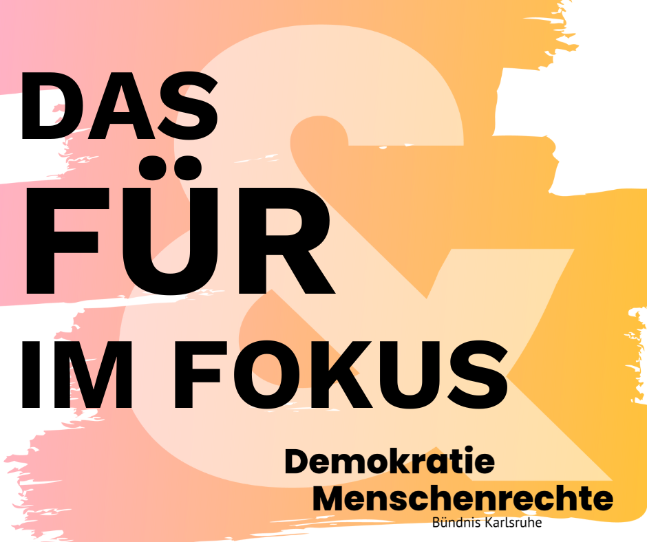 Über 40 Karlsruher Initiativen, Kirchen, Religionsgemeinschaften, Parteien, Verbände, Vereine und Institutionen haben sich zum Bündnis für Demokratie und Menschenrechte zusammengeschlossen. Dieser breite zivilgesellschaftliche und überparteiliche Zusammenschluss betont das gemeinsame Eintreten für die freiheitlich-demokratische Grundordnung. In der gemeinsamen Erklärung positionieren sich die Bündnispartner für ihre namensgebenden Werte. Das Bekenntnis zur Menschenwürde sowie zum Demokratie-, Rechtsstaats- und Sozialstaatsprinzip eint die vielfältigen Akteure aus der Karlsruher Stadtgesellschaft.