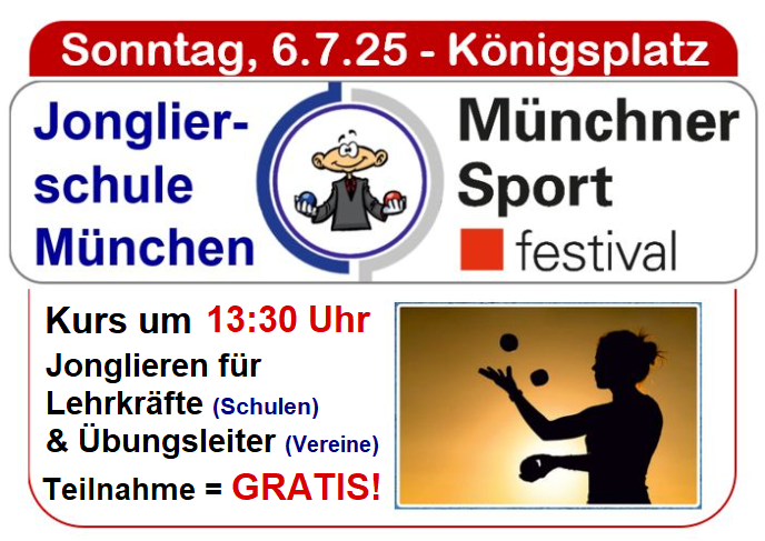 (lifepr) (München, 03.07.2025) Beim Münchner Sportfestival am Sonntag, den 6. Juli 2025, können Besucherinnen und Besucher völlig kostenlos das Jonglieren lernen – und das gleich in fünf verschiedenen Workshops!