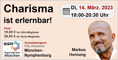 (lifepr) (München, 22.12.2022) Die Abkürzung GSA steht für German Speakers Association und ist der Berufsverband für professionelle Redner. Die GSA-Regionalgruppe hat heute Ihr Workshop- und Veranstaltungsprogramm für das 2. Halbjahr vorgestellt. Am 13. Januar 2023 findet zum Aufttakt ein interaktiver Workshop statt zum Thema