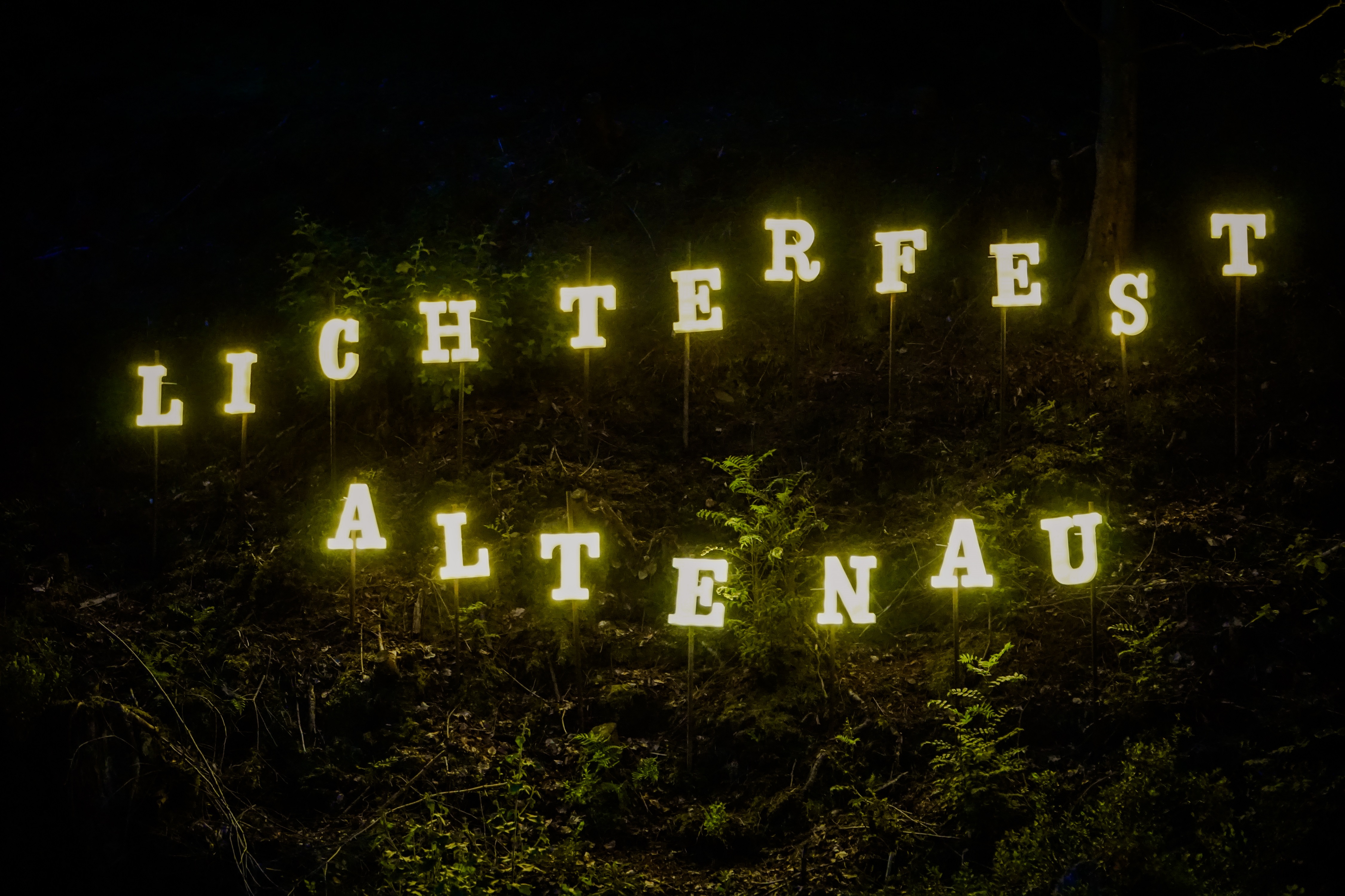 Lichtanimation Schriftzug am Okerteich in Altenau beim Lichterfest