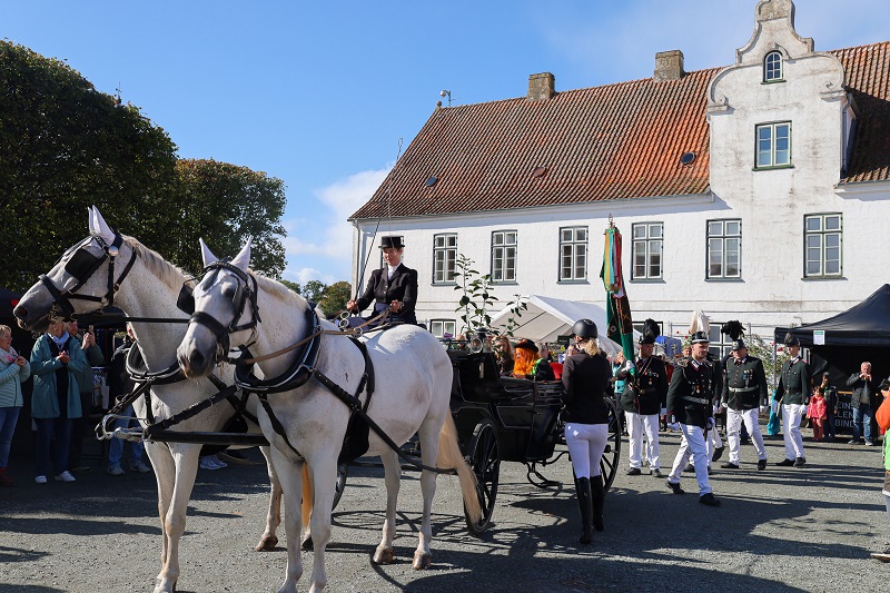 Kutsche im Schlosshof in Glücksburg mit Kutsche und Apfelkönigin beim Apfelfest