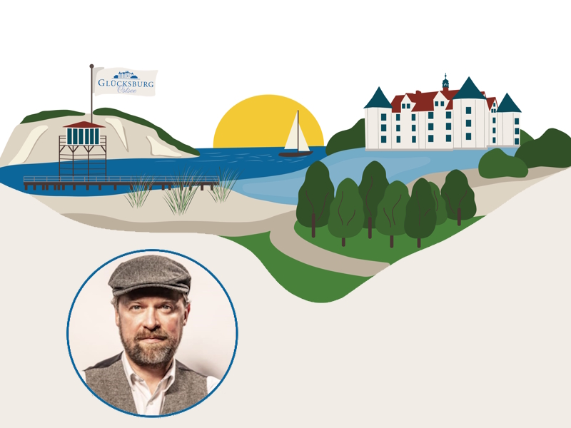 Collage der Führung "Filmstadt Glücksburg" mit Schauspieler Mathias Harrebye–Brandt