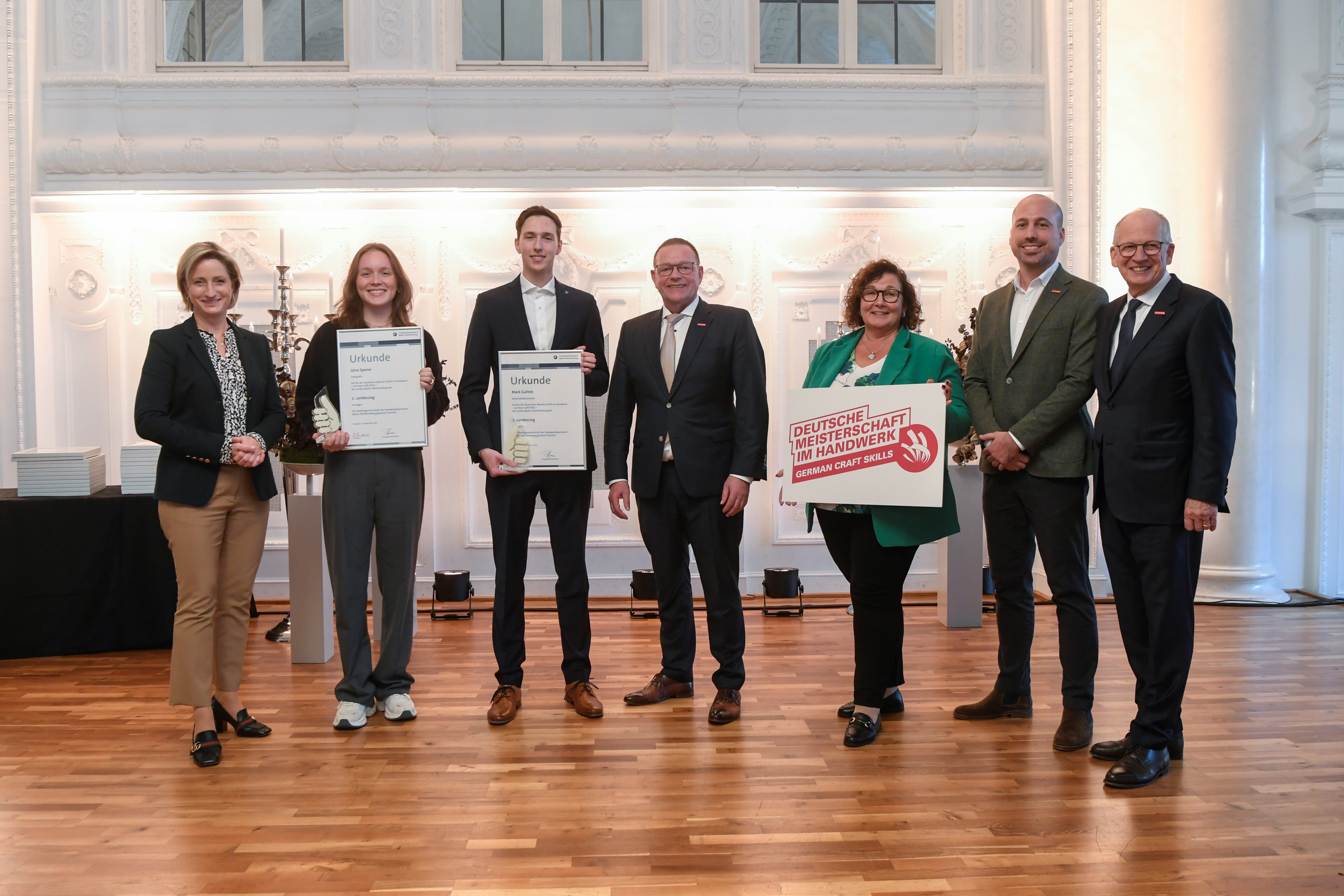 (lifepr) (Mannheim, 14.11.2025) Die Handwerkskammer Mannheim Rhein-Neckar-Odenwald freut sich über fünf Landessieger bei der Deutschen Meisterschaft im Handwerk. „Eine tolle Leistung“, lobt Kammerpräsident Klaus Hofmann. Die fünf Landesbesten aus der Region durften sich bei einer Feierstunde im glanzvollen Ambiente des Weißen Saals des Neuen Schlosses in Stuttgart feiern lassen. Selbst Wirtschaftsministerin Nicole Hoffmeister-Kraut gab sich die Ehre und gratulierte neben Landes-Handwerkspräsident Rainer Reichhold den Siegerinnen und Siegern persönlich.