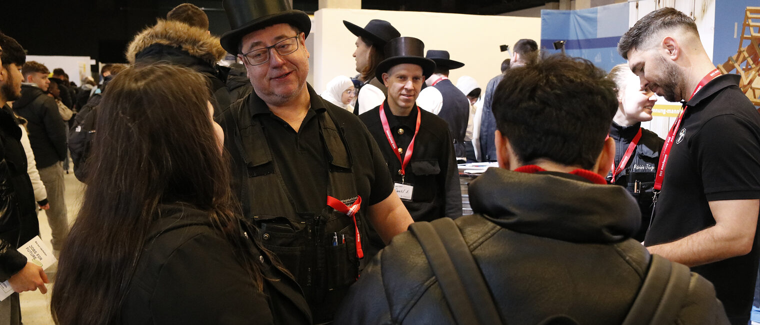 Wie sehr es das Handwerk versteht, Interesse auf sich zu zeigen, zeigte sich schon beim Eröffnungsrundgang mit Ehrengästen, den auch Mannheims Erste Bürgermeisterin Prof. Dr. Diana Pretzell begleitete. Egal, ob Hämmern bei den Zimmerern und Schreinern, ob Glücksmomente einsammeln bei den Schornsteinfegern oder über die Möglichkeiten der modernen Orthopädietechnik staunen und bionische Prothesen unter die Lupe zu nehmen – die Gäste ließen sich das Mitmachen nicht nehmen. Genau darum ging es auch am Stand des Handwerks: „Wir können unsere Berufe lebendig zeigen und sie live erlebbar machen“, sagt Ausbildungs- und Nachwuchssicherungsberater Leonard Kopp. „Das ermöglicht einen ganz anderen Zugang und Einblick als nur die Theorie in Form von Informationen.“
