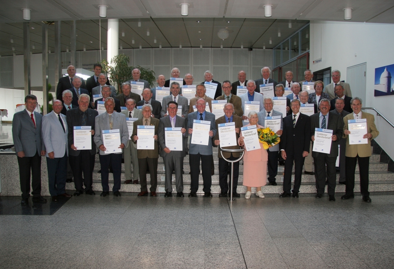 (lifepr) (Mannheim, 22.06.2010) Im Rahmen einer Feierstunde hat der Vizepräsident der Handwerkskammer Mannheim Rhein-Neckar-Odenwald, Alois Jöst, insgesamt 39 "Goldene Meister" aus Heidelberg und Umgebung zum Jubiläum des 50. Jahrestages ihrer Meisterprüfung gratuliert. Mit ihrem persönlichen Einsatz hätten sie alle dazu beigetragen, dass Ludwig Erhardts Wort vom "Wohlstand für alle" Wirklichkeit werden konnte, betonte Jöst. Und wörtlich: "Sie haben Verantwortung übernommen und dafür Sorge getragen, dass junge Menschen eine qualifizierte Ausbildung erhielten".