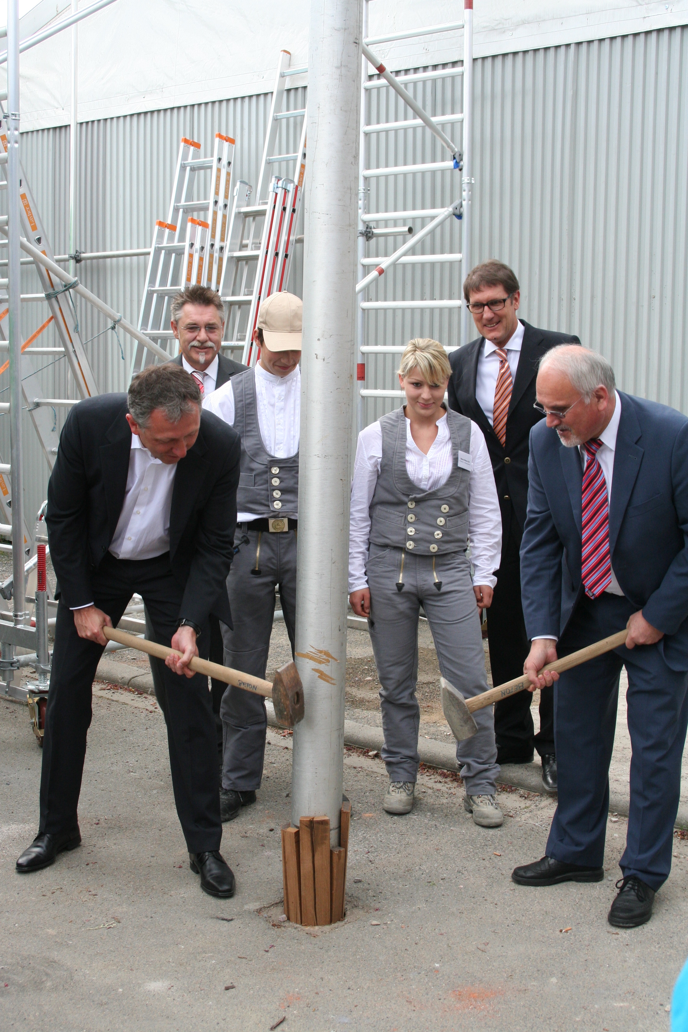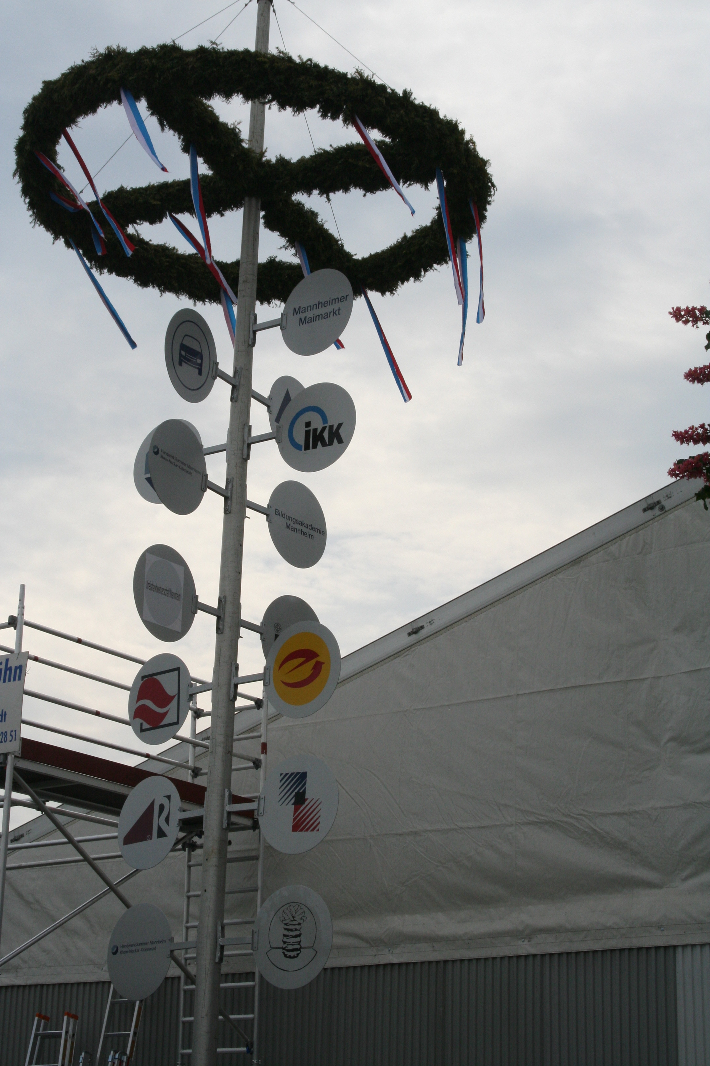 (lifepr) (Mannheim, 29.04.2011) Mit einem letzten symbolischen Schlag durch Mannheims Oberbürgermeister Dr. Peter Kurz und Handwerkskammerpräsident Walter Tschischka hat die Handwerkskammer Mannheim Rhein-Neckar-Odenwald dem diesjährigen Maimarkt den Maibaum als Symbol des Handwerks und Mittelpunkt von Deutschlands größter Verbrauchermesse übergeben. Weit über das Mühlfeld ist er sichtbar und begleitet die Besucher rund um die Uhr.