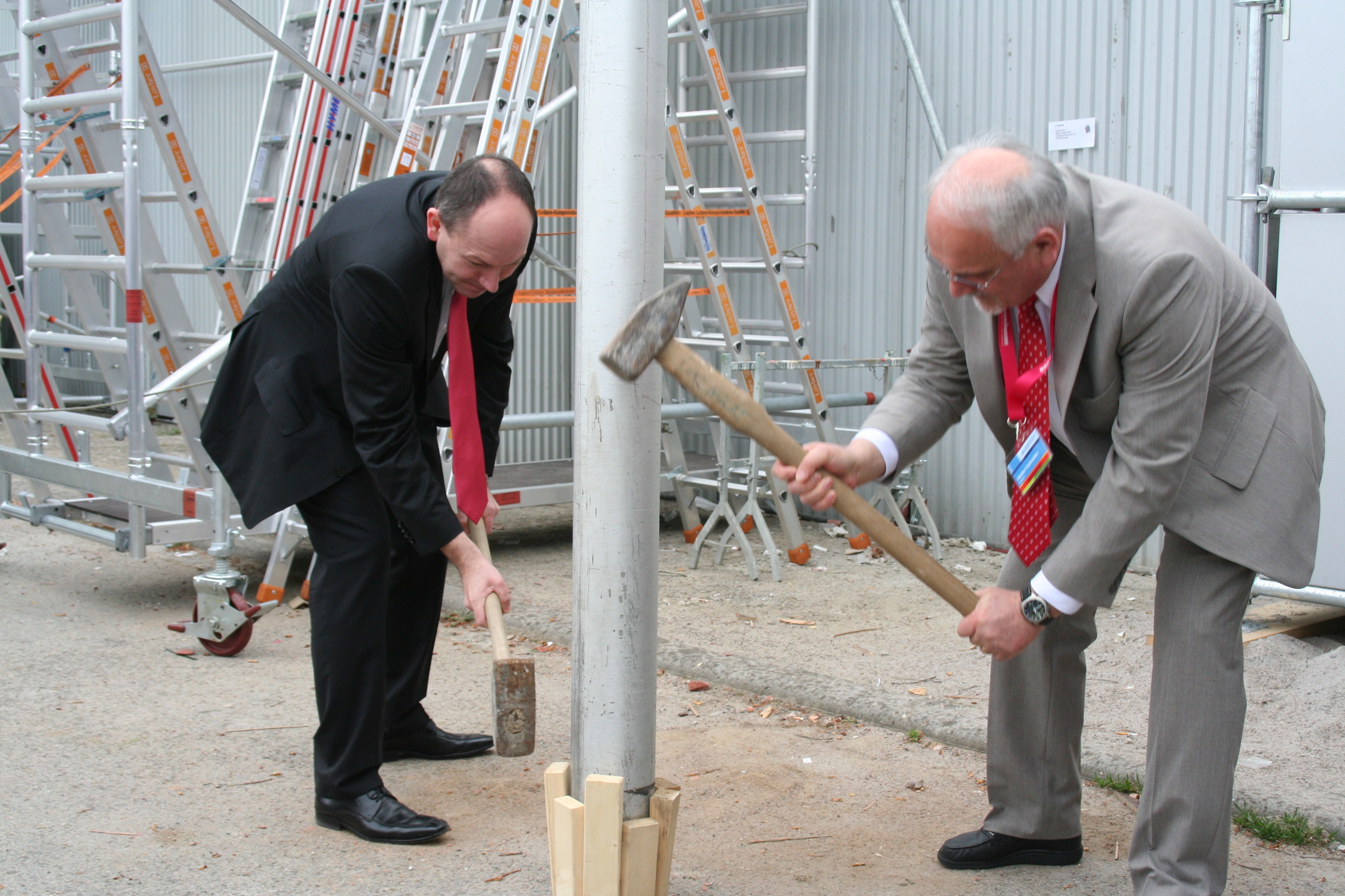(lifepr) (Mannheim, 26.04.2013) Mit einem letzten symbolischen Schlag durch Mannheims Oberbürgermeister Dr. Peter Kurz und Kammerpräsident Walter Tschischka hat die Handwerkskammer Mannheim Rhein-Neckar-Odenwald dem diesjährigen Maimarkt den Maibaum als Symbol des Handwerks und Mittelpunkt von Deutschlands größter Verbrauchermesse übergeben, "weil ein Maimarkt ohne Maibaum nur die Hälfte wert ist", wie Tschischka erklärte. Weit über das Mühlfeld ist er sichtbar und begleitet die Besucher rund um die Uhr.