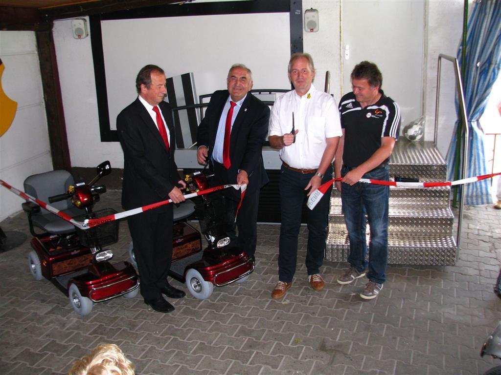 (lifepr) (Mannheim, 10.07.2013) Es sei eines der wichtigsten Ziele des Fußballvereins FC Huttenheim, ein Treffpunkt der Generationen zu sein, meinte Vorstand Rolf Koch bei der Übergabe von zwei Elektromobilen und der Einweihung einer mobilen Liftanlage zur Erschließung des Clubhauses für Menschen, die auf Rollatoren und Rollstühle angewiesen sind. Mit Förderung durch das Bundesministerium für Familie, Senioren, Frauen und Jugend soll mit diesen technischen Hilfen erprobt werden, wie Menschen in höherem Lebensalter möglichst lange an der sportlichen Gemeinschaft teilhaben können.