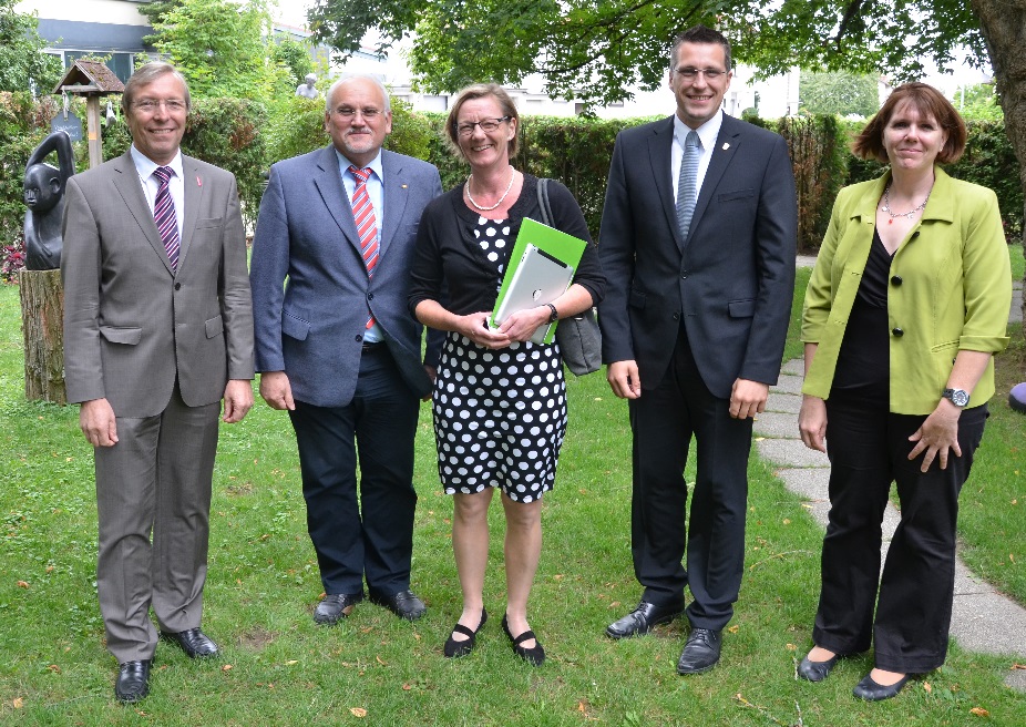 Während ihrer Sommertour durch das Land Baden-Württemberg fand die Fraktionsvorsitzende der Fraktion Bündnis 90/Die Grünen im Landtag, Edith Sitzmann, den Weg in den Kammerbezirk und war zu Gast in Wiesloch. Dort traf sie auf den Präsidenten der Handwerkskammer Mannheim Rhein-Neckar-Odenwald, Walter Tschischka, sowie den Vizepräsidenten der Kammer, Alois Jöst. Zusammen mit der Umweltberaterin der Kammer, Claudia Joerg diskutierte sie mit Dr. Kai Schmidt-Eisenlohr; MdL, aktuelle Themen, die das Handwerk der Region bewegt.