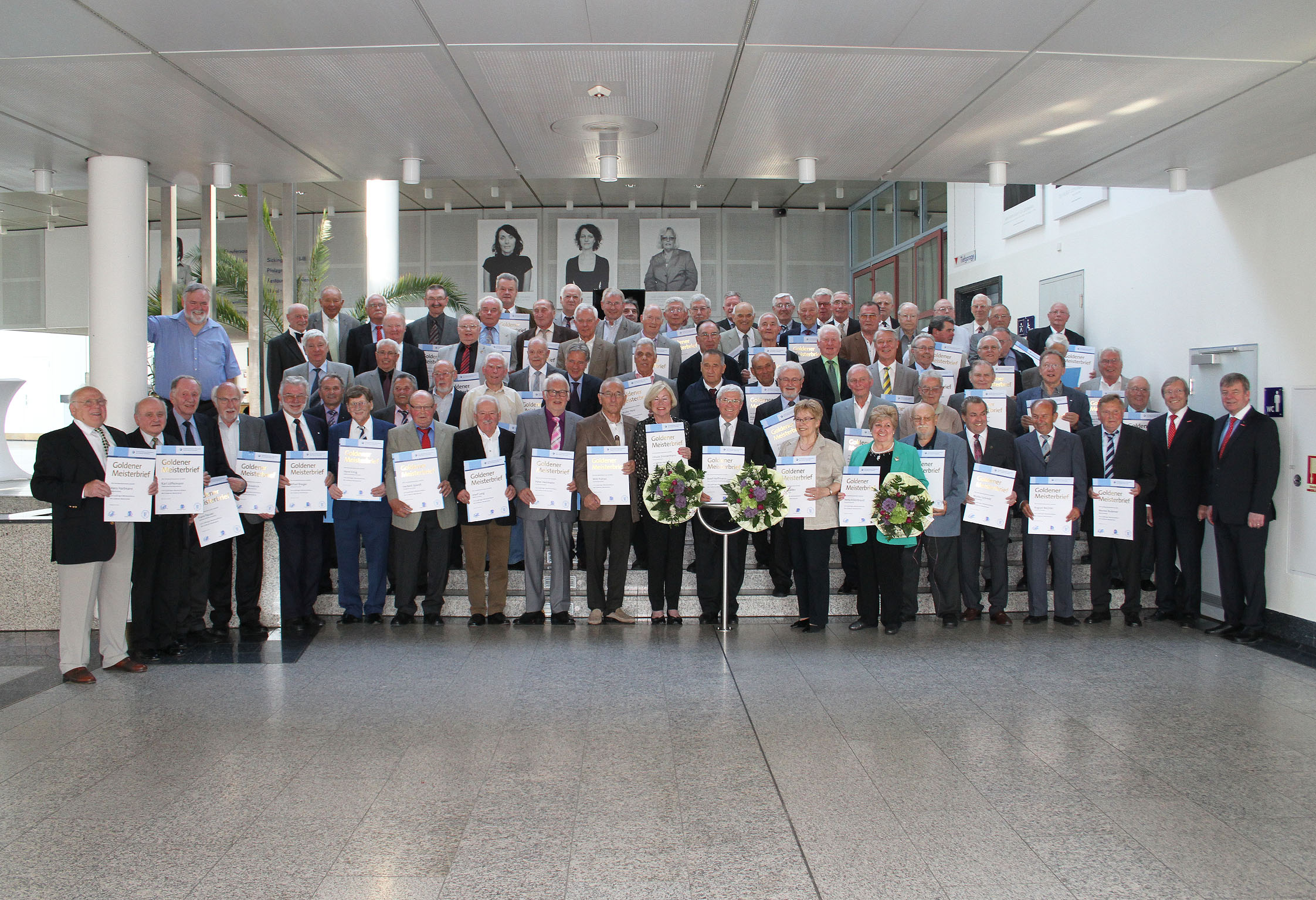 Insgesamt 85 Goldene Meister aus Heidelberg und Umgebung ehrte Vizepräsident Alois Jöst persönlich durch Überreichen einer Urkunde. Er wünschte allen eine gute Zukunft und gratulierte, auch im Namen der mehr als 12.600 Betriebe, zur goldenen Meisterschaft.