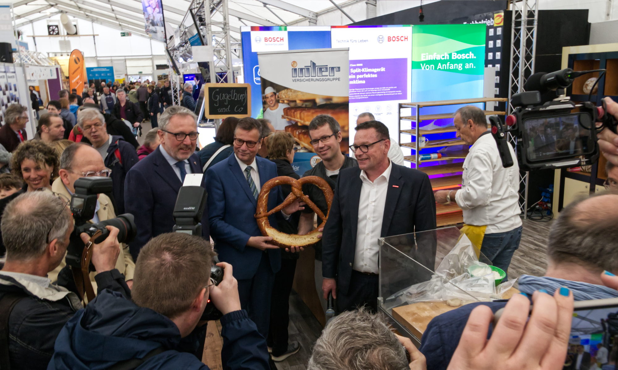 (lifepr) (Mannheim, 02.05.2023) Es war ein Messeauftakt wie man ihn sich wünscht: Dicht an dicht schoben sich die Menschen am Samstagvormittag durch die Halle des Handwerks auf dem Maimarkt. Mittendrin Prominenz aus Politik und Wirtschaft, die nach der offiziellen Eröffnung in der Festhalle kurz zuvor gleich noch einmal Eröffnung feiern durfte – ganz nach Handwerkertradition mit dem Richtfest am eigens erbauten Maimarkthaus in den „Lebenden Werkstätten“ im Handwerkerzelt.